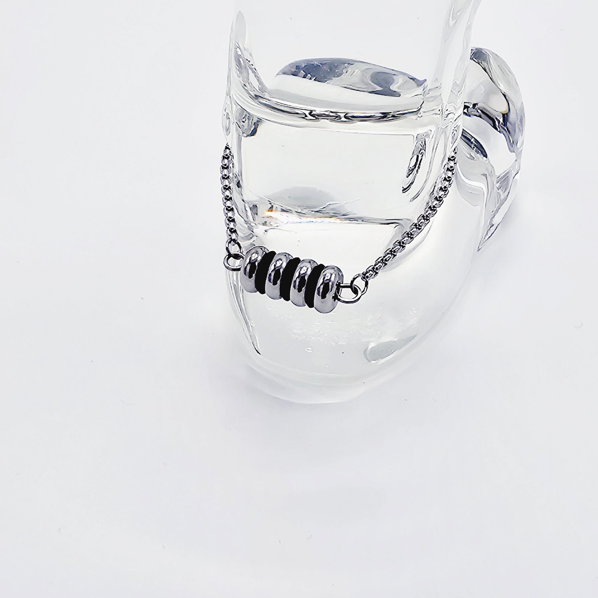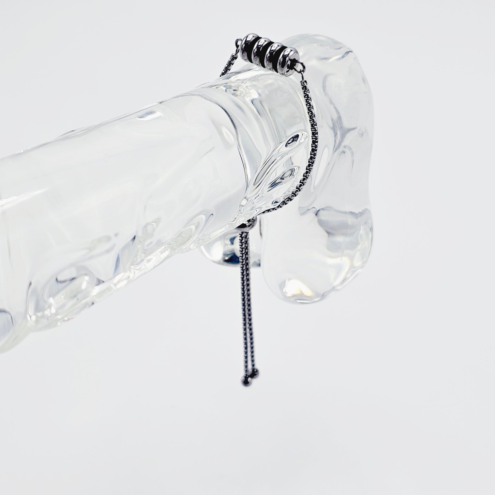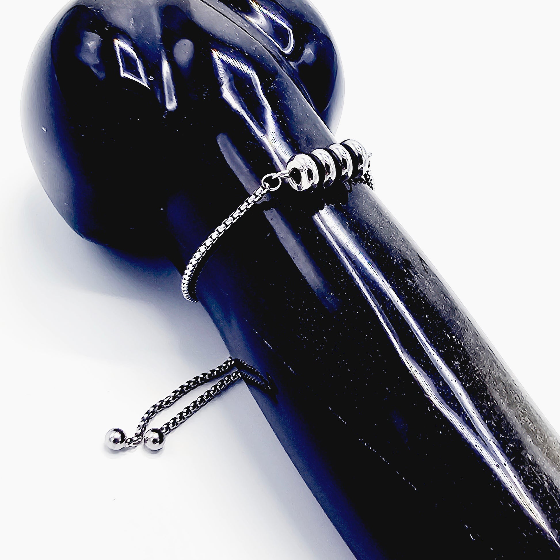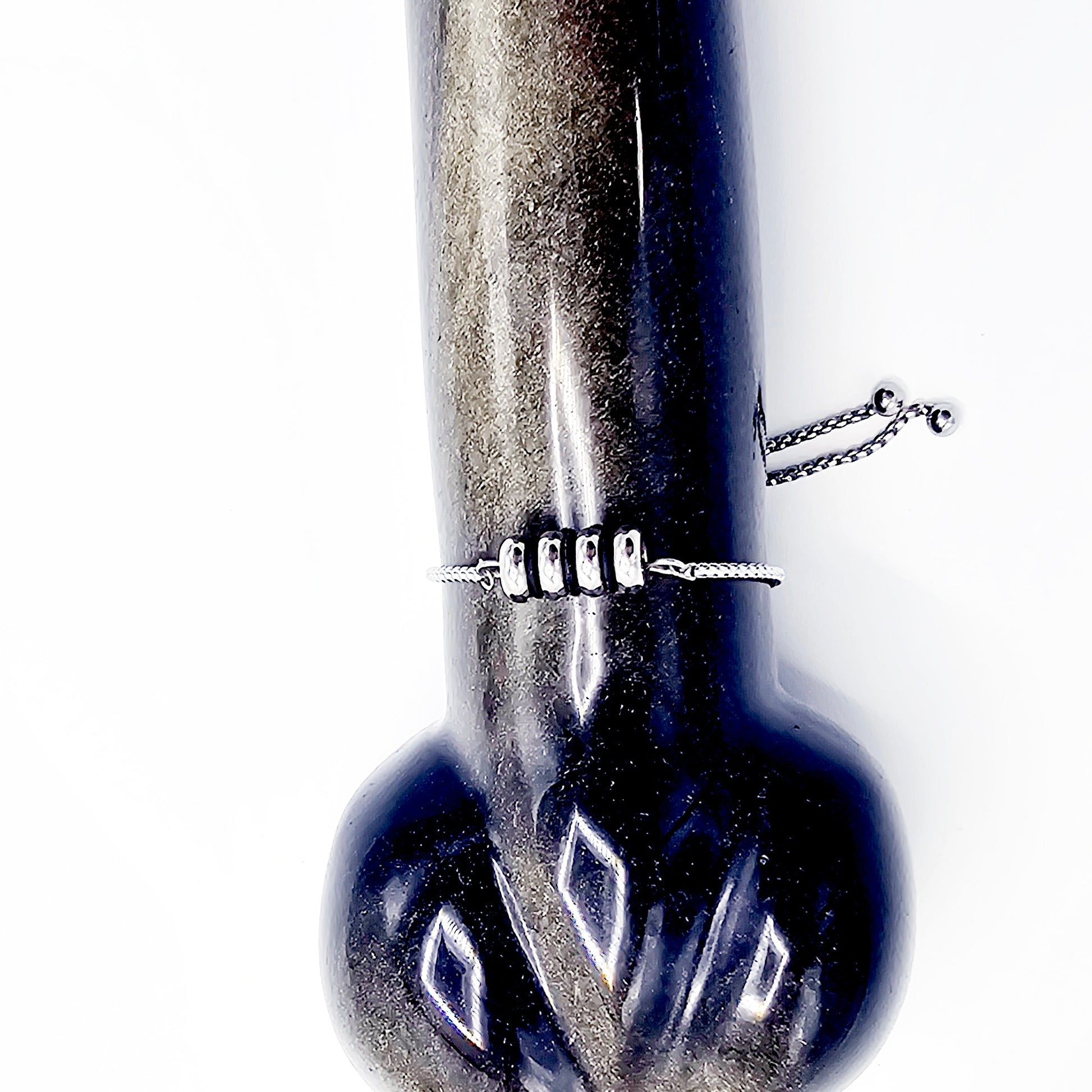 Penis Chain Noose Bracelet with Ribbed Rolling Barrel. Non-Piercing Genital Jewelry for Men