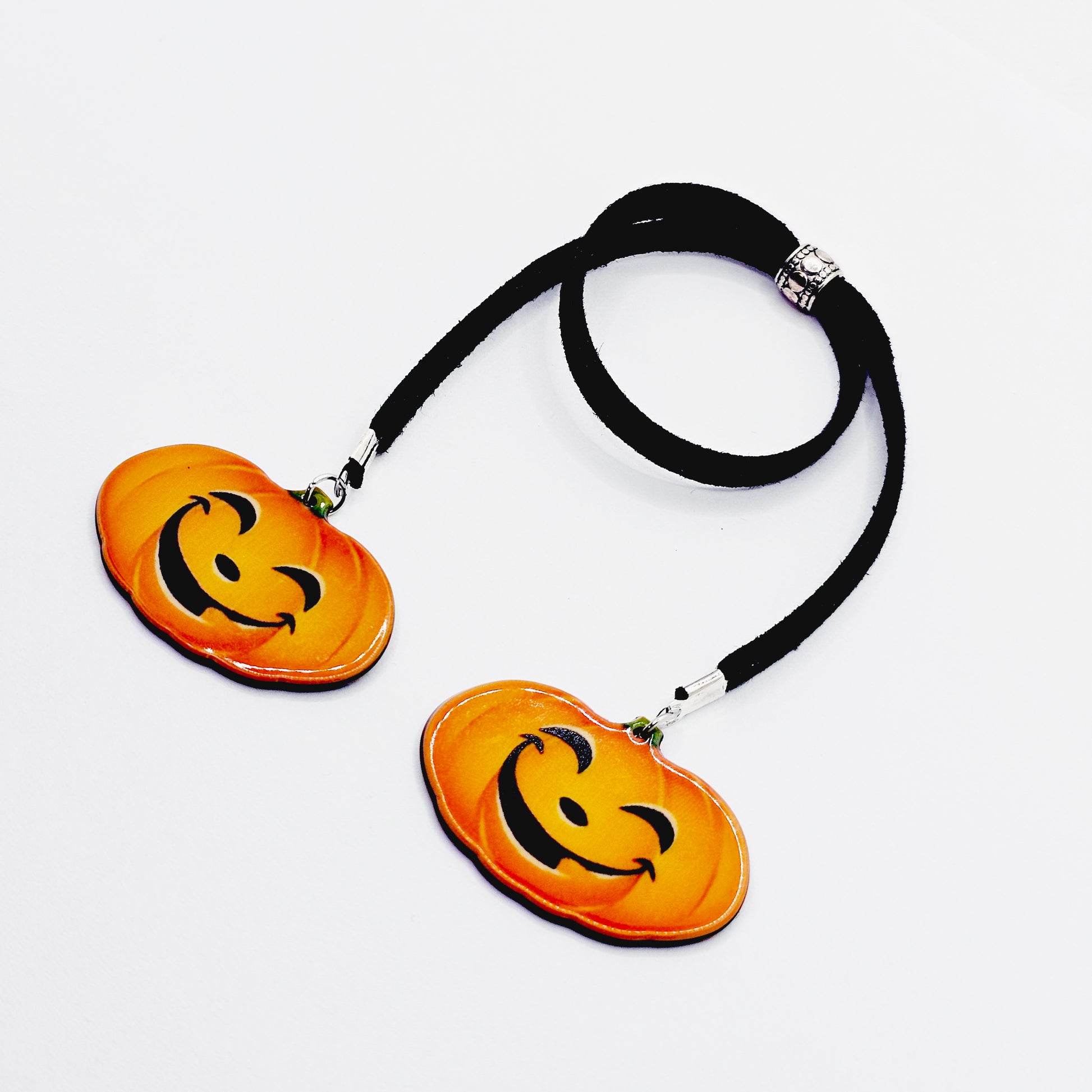 Penis Noose Bracelet for Halloween. Adjustable Faux Leather Cock and Ball Tassel with Silly Jack-O-Lanterns