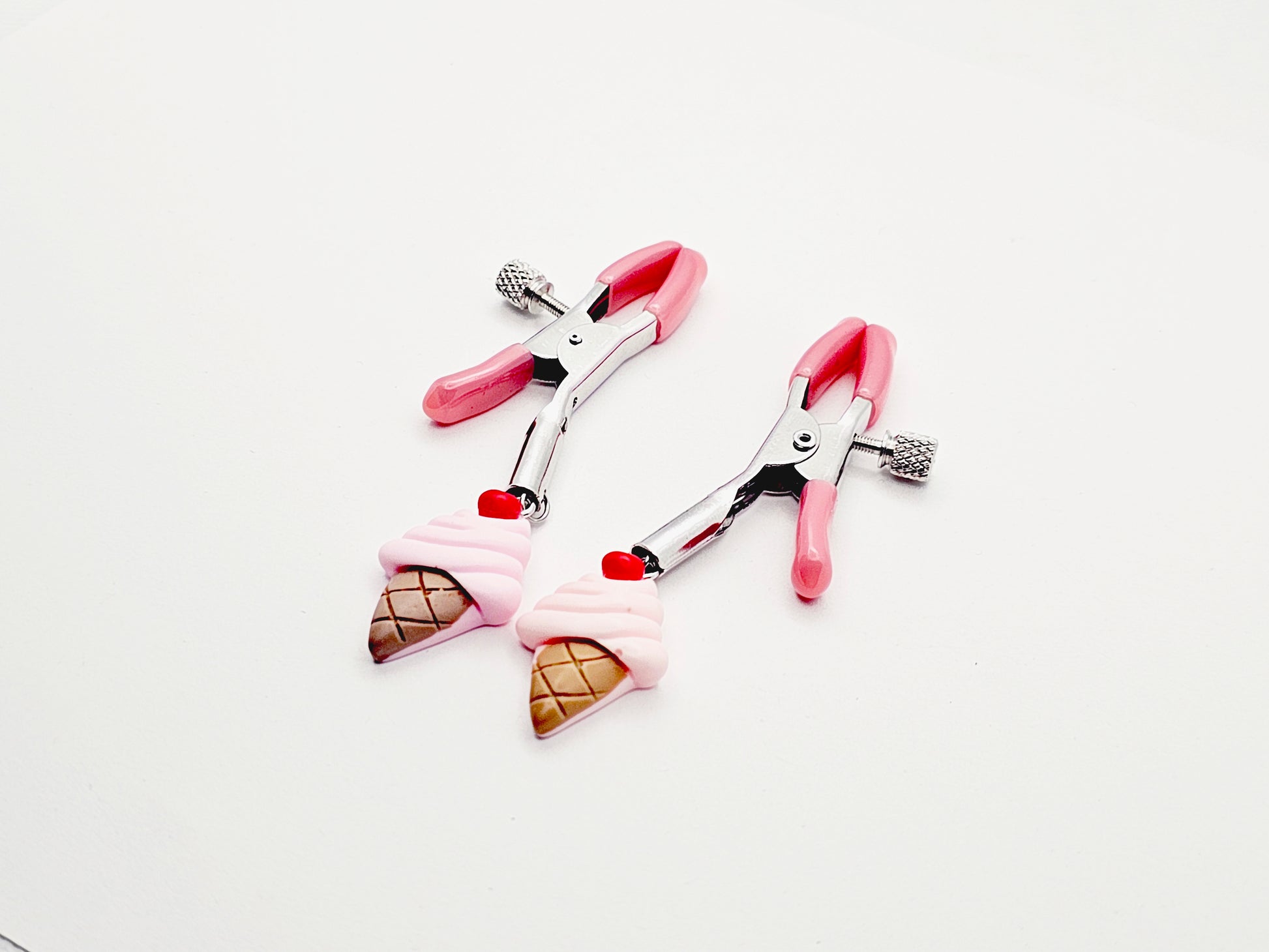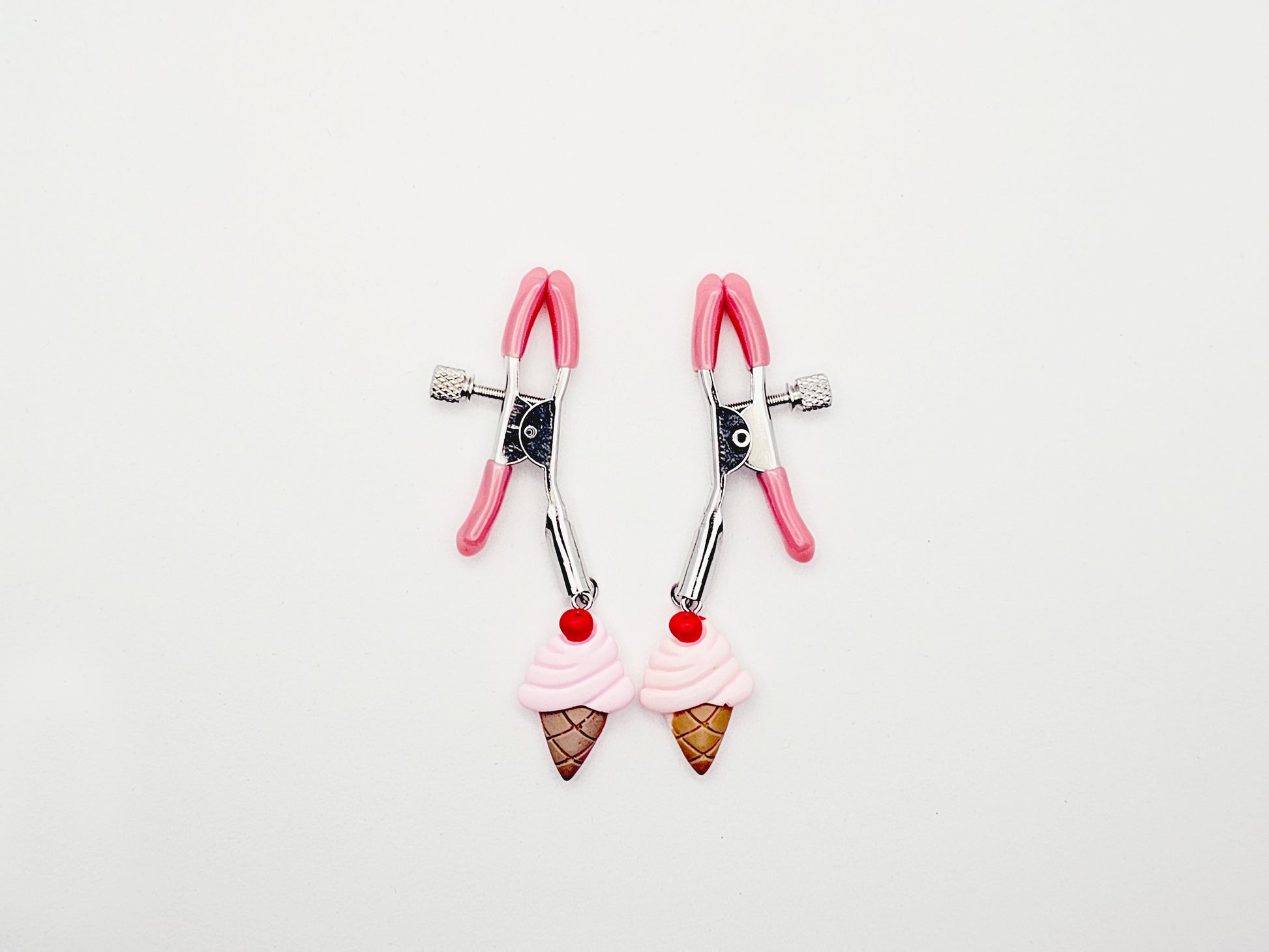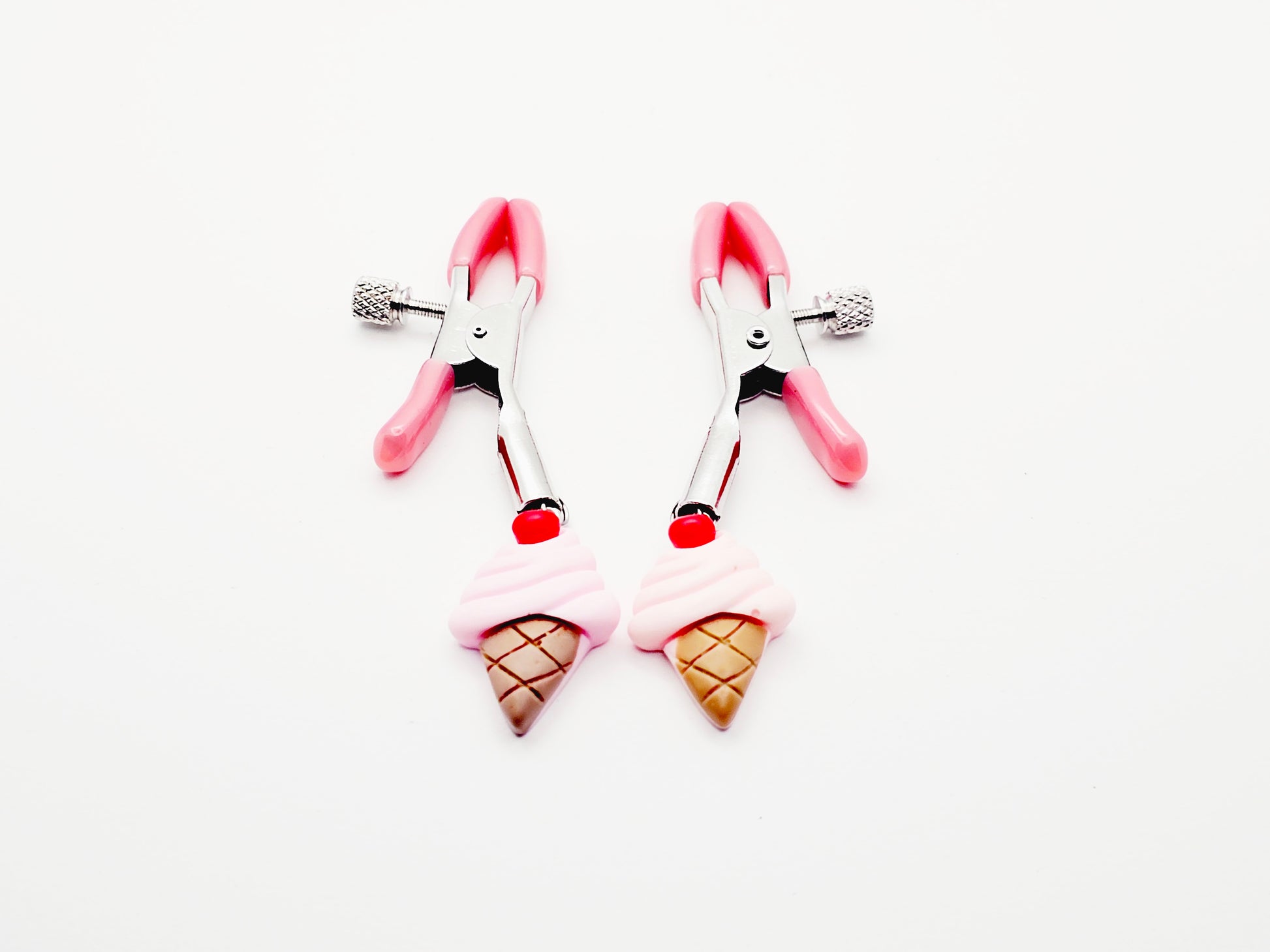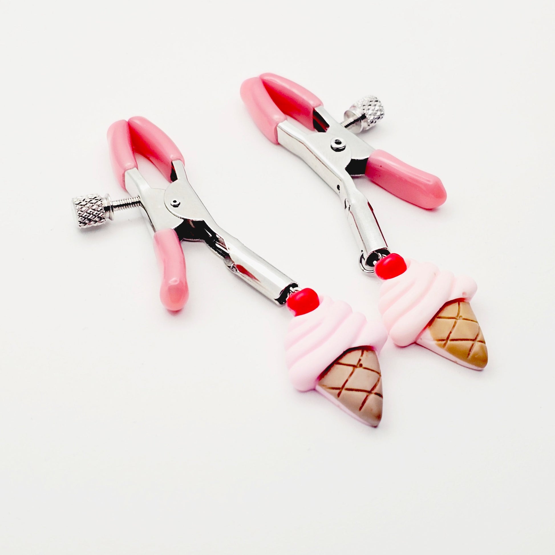 DDLG Nipple Clamps. Pink Ice Cream Cone Adjustable Clamps