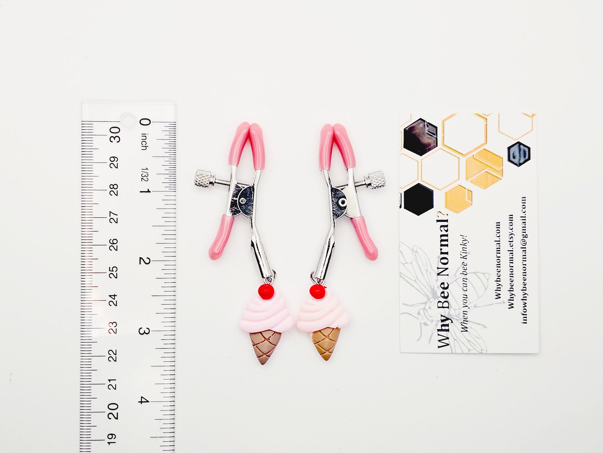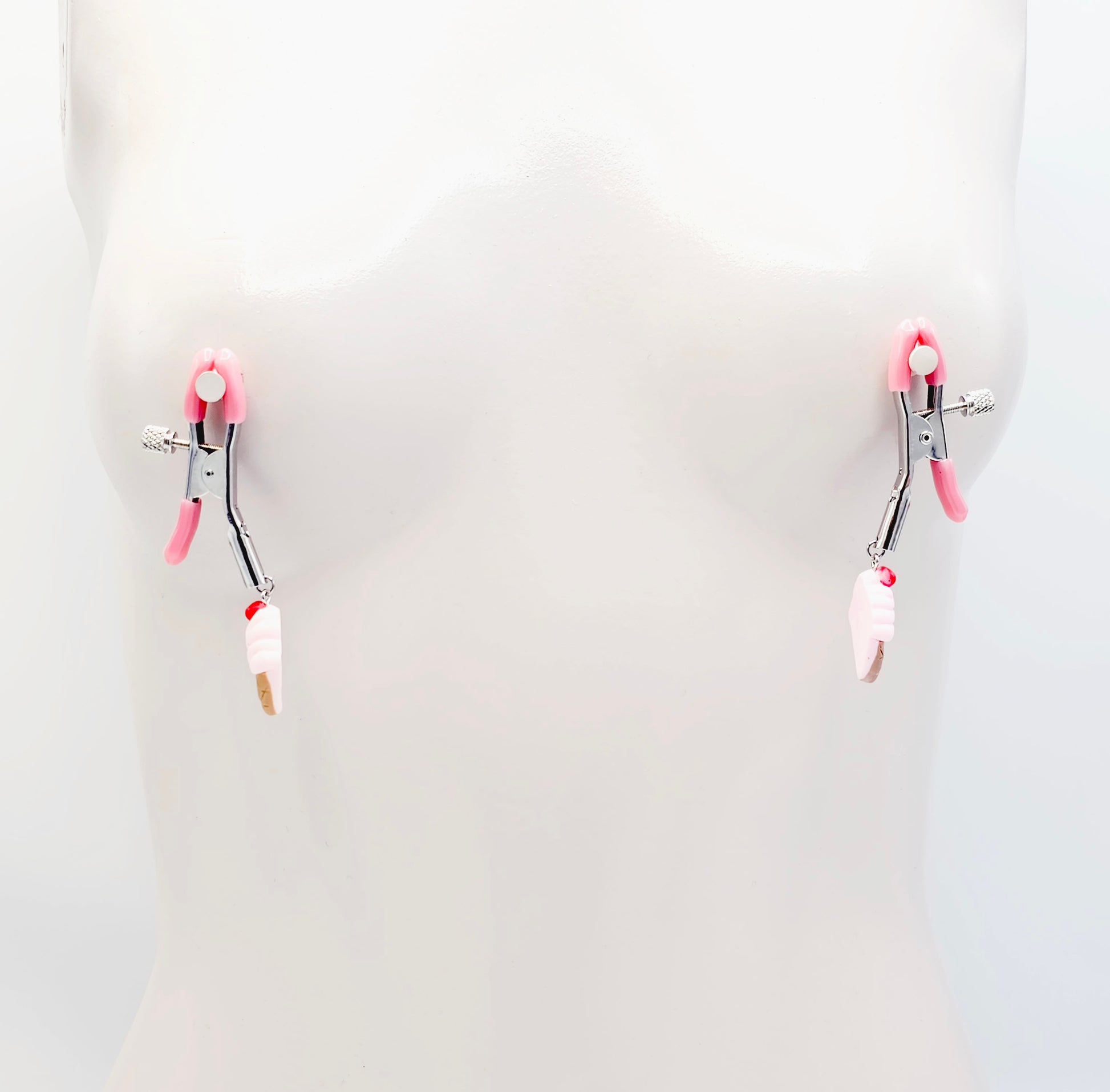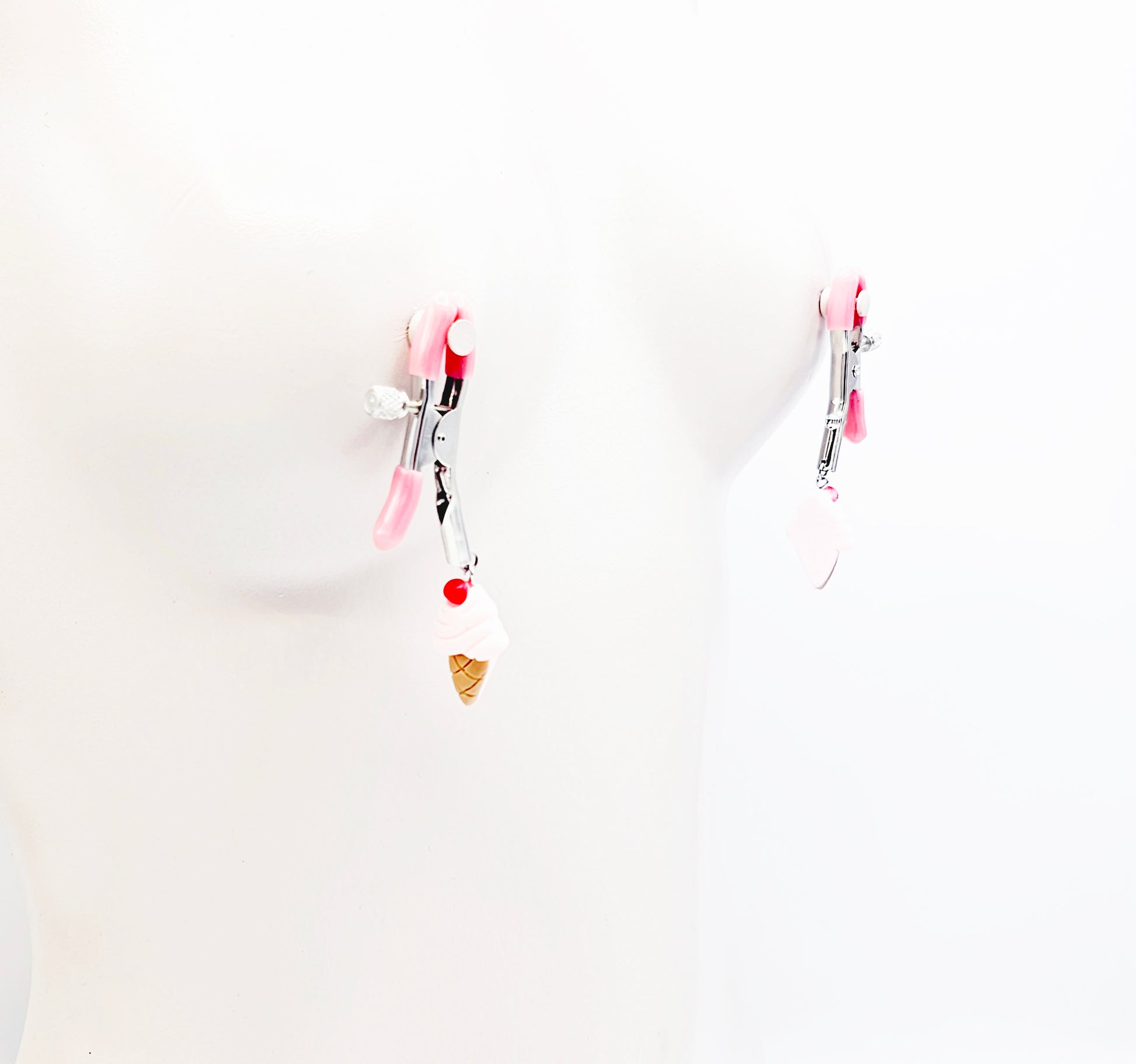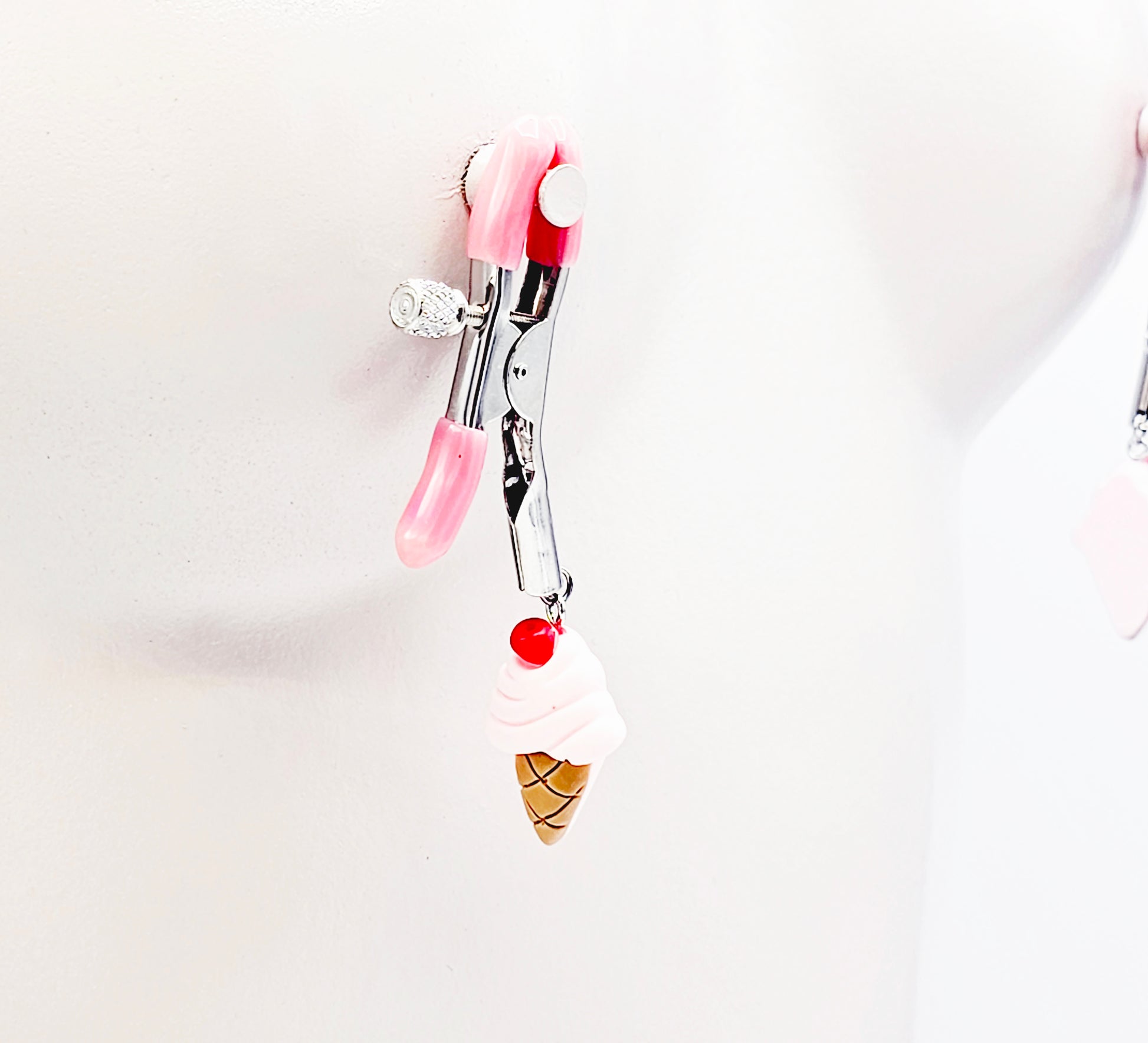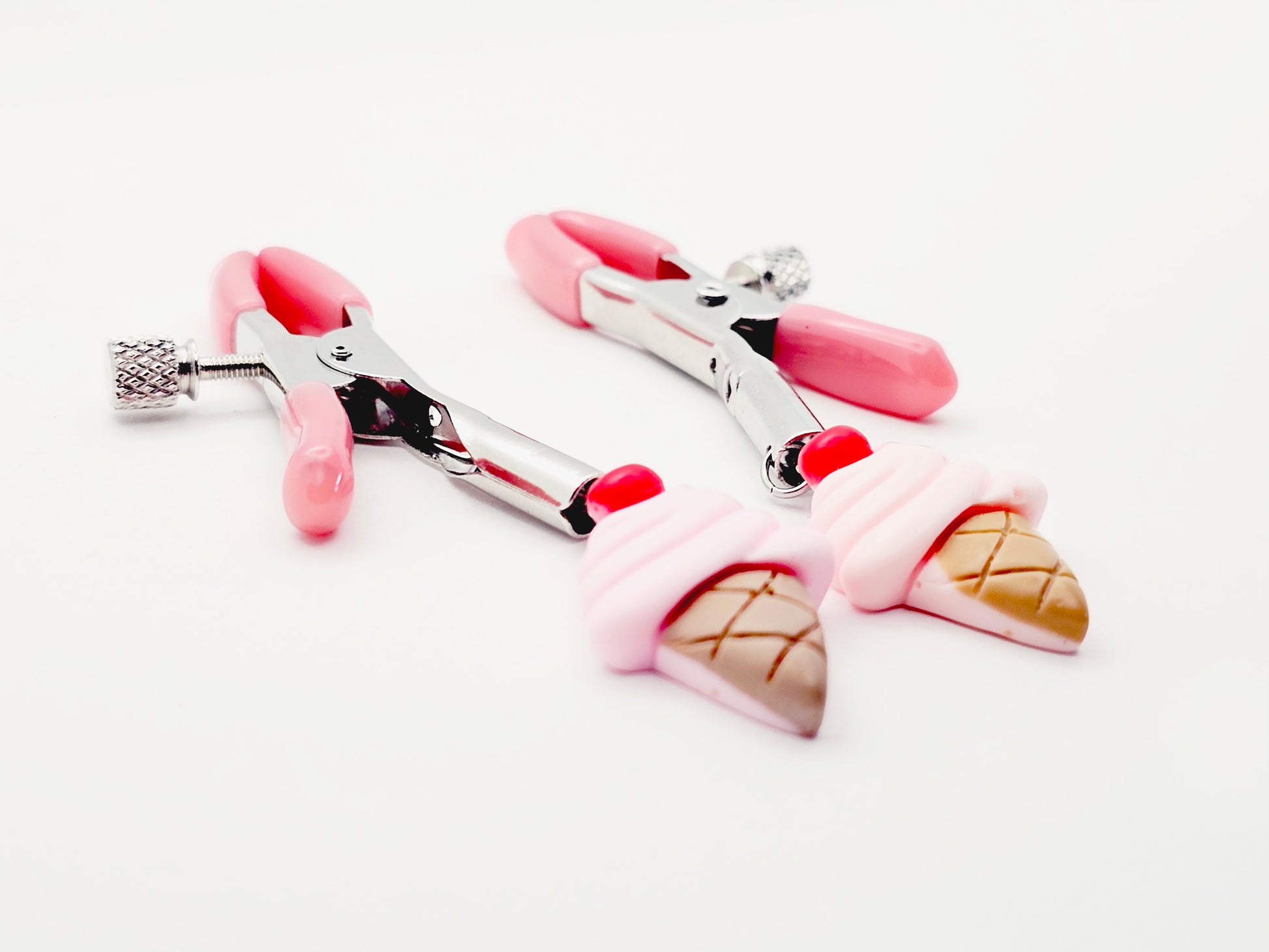 DDLG Nipple Clamps. Pink Ice Cream Cone Adjustable Clamps