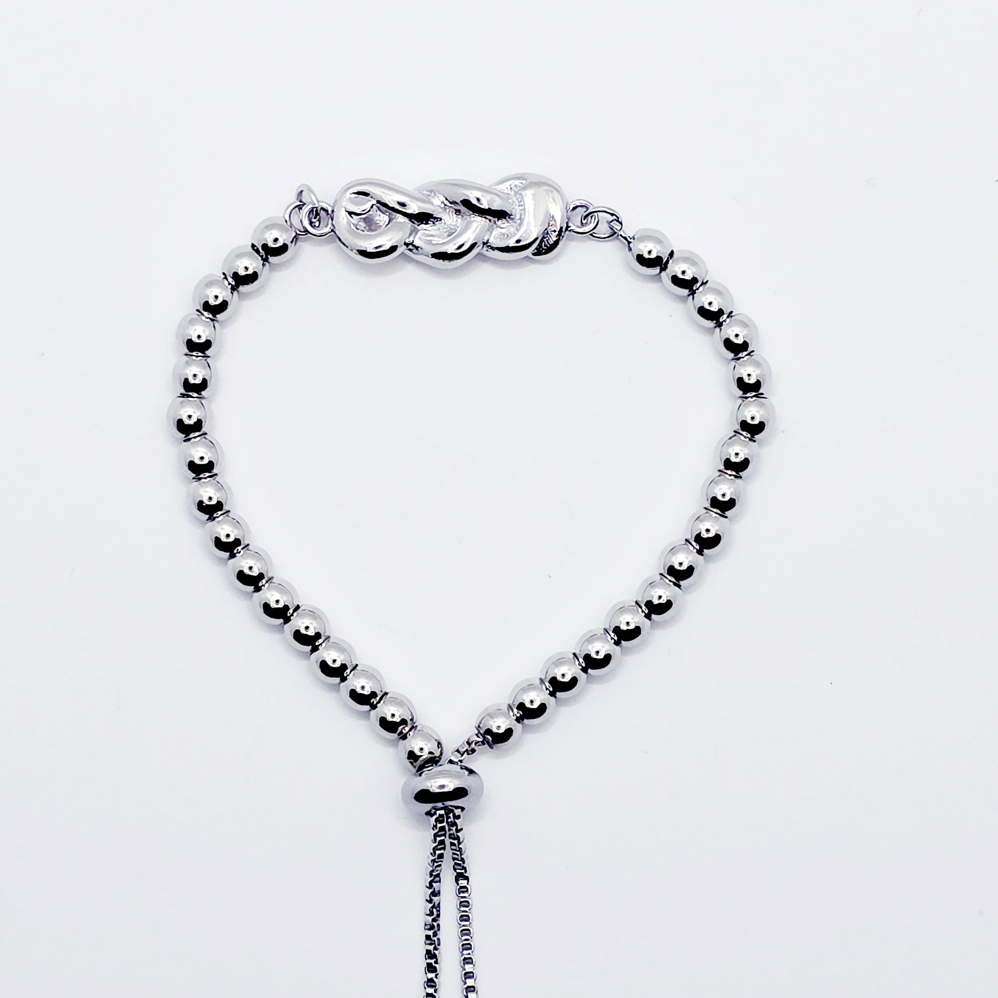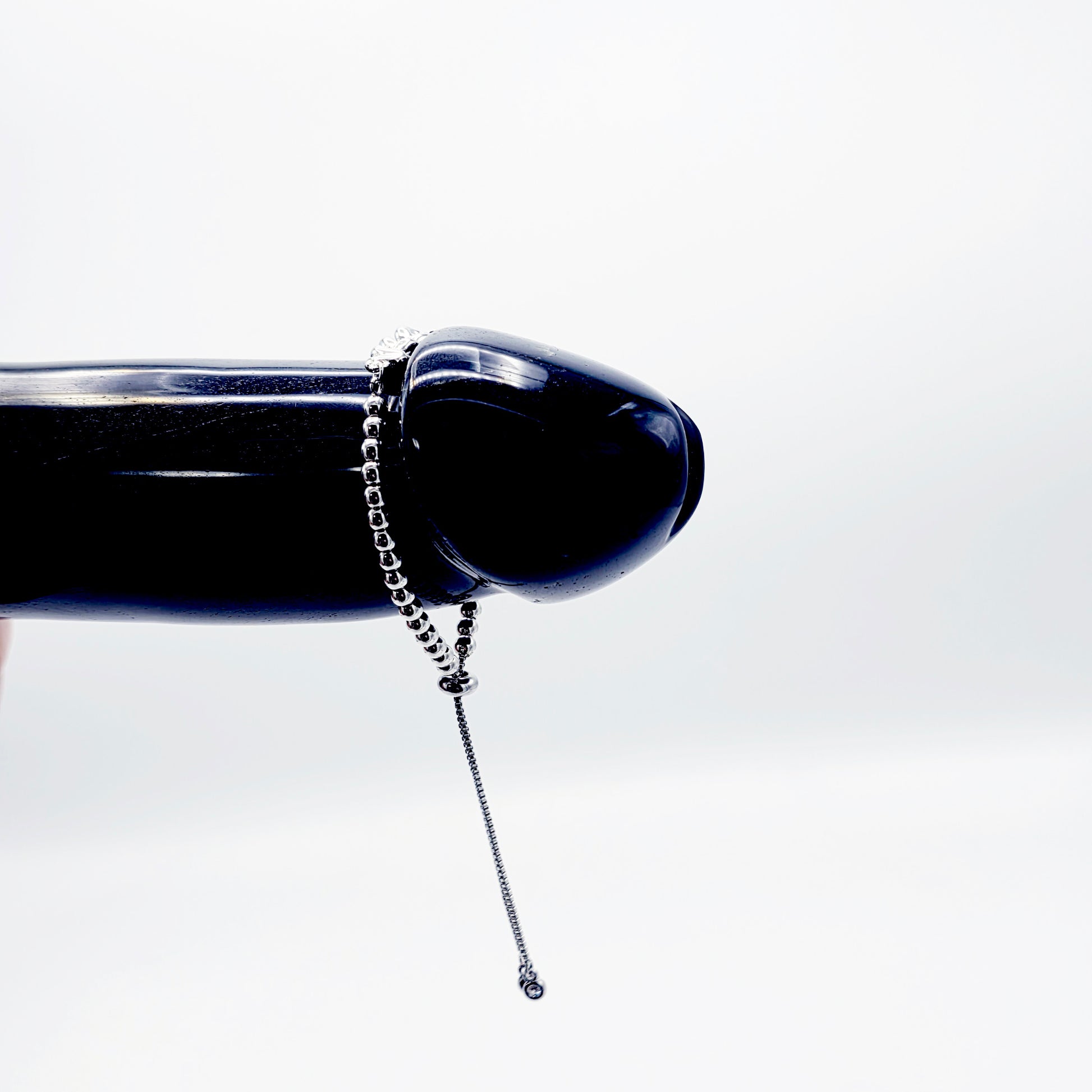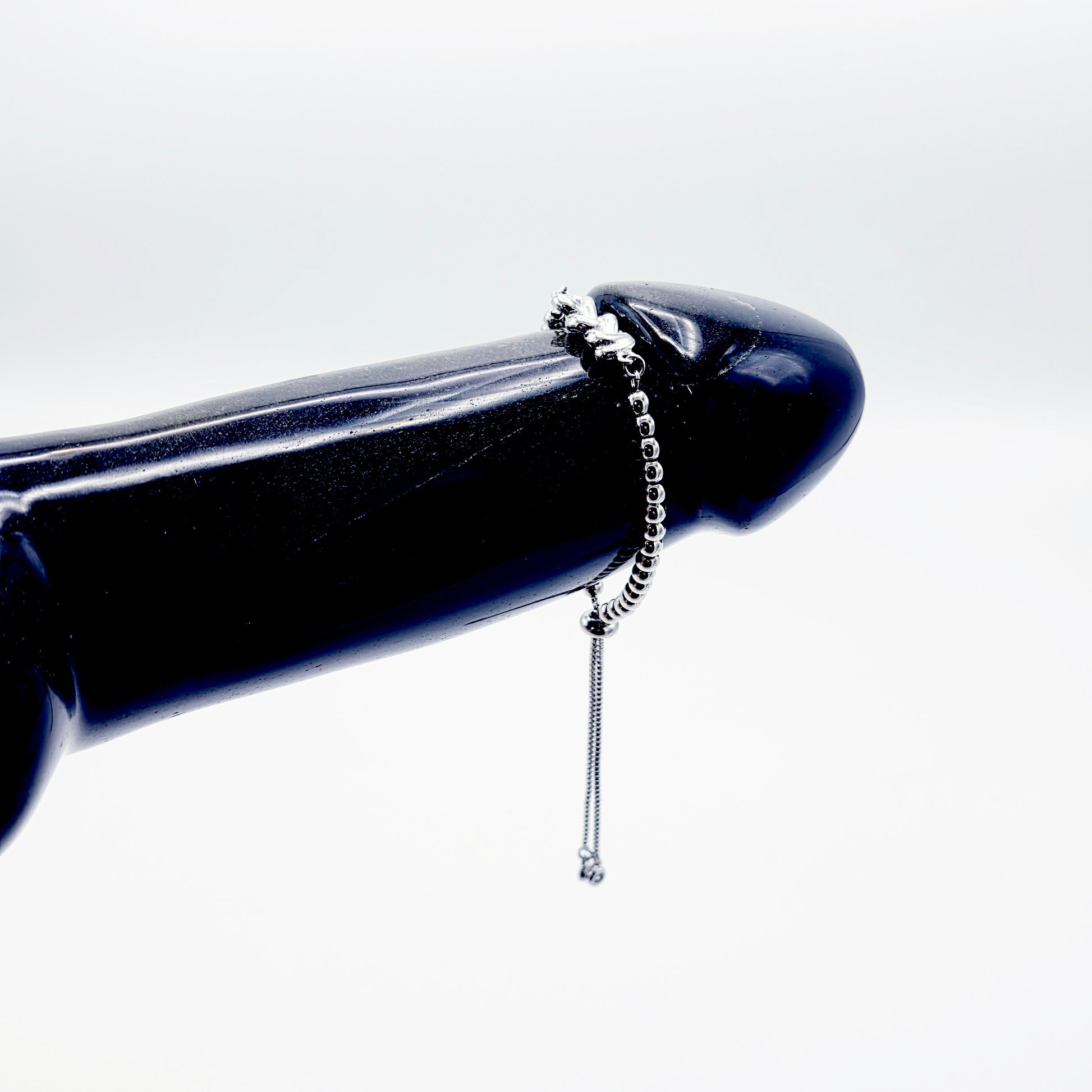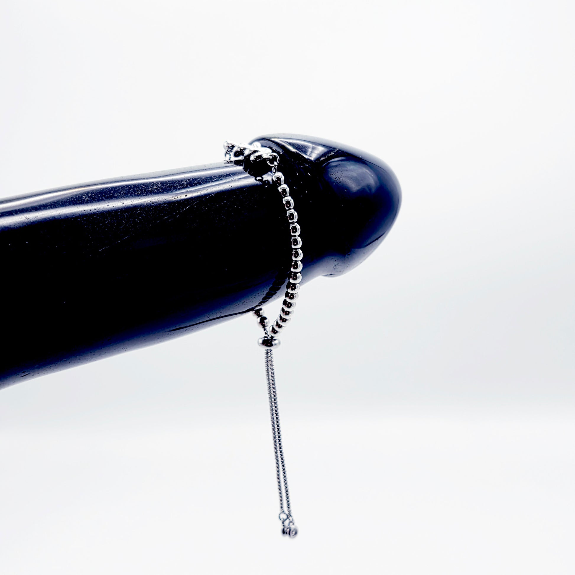 Platinum Penis Noose, Adjustable Cock Bracelet with Beads