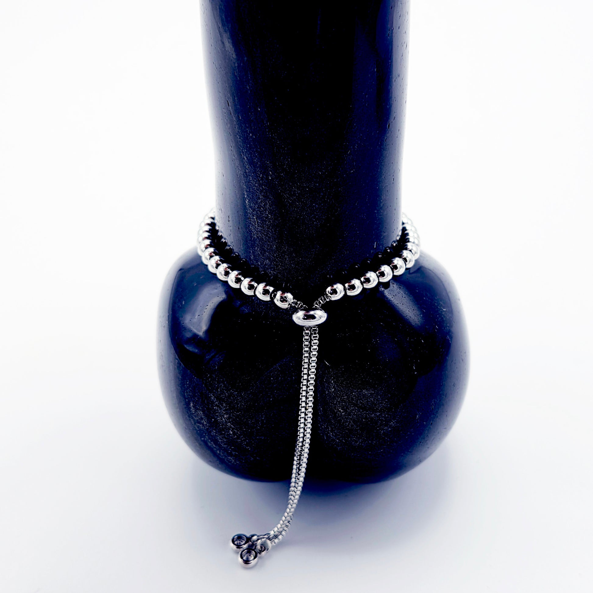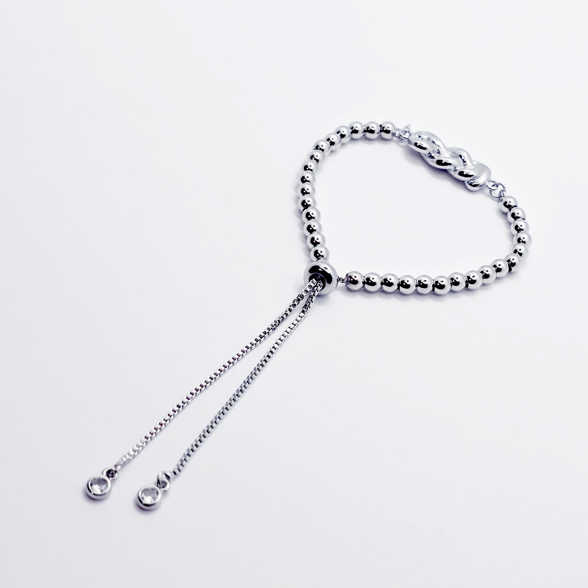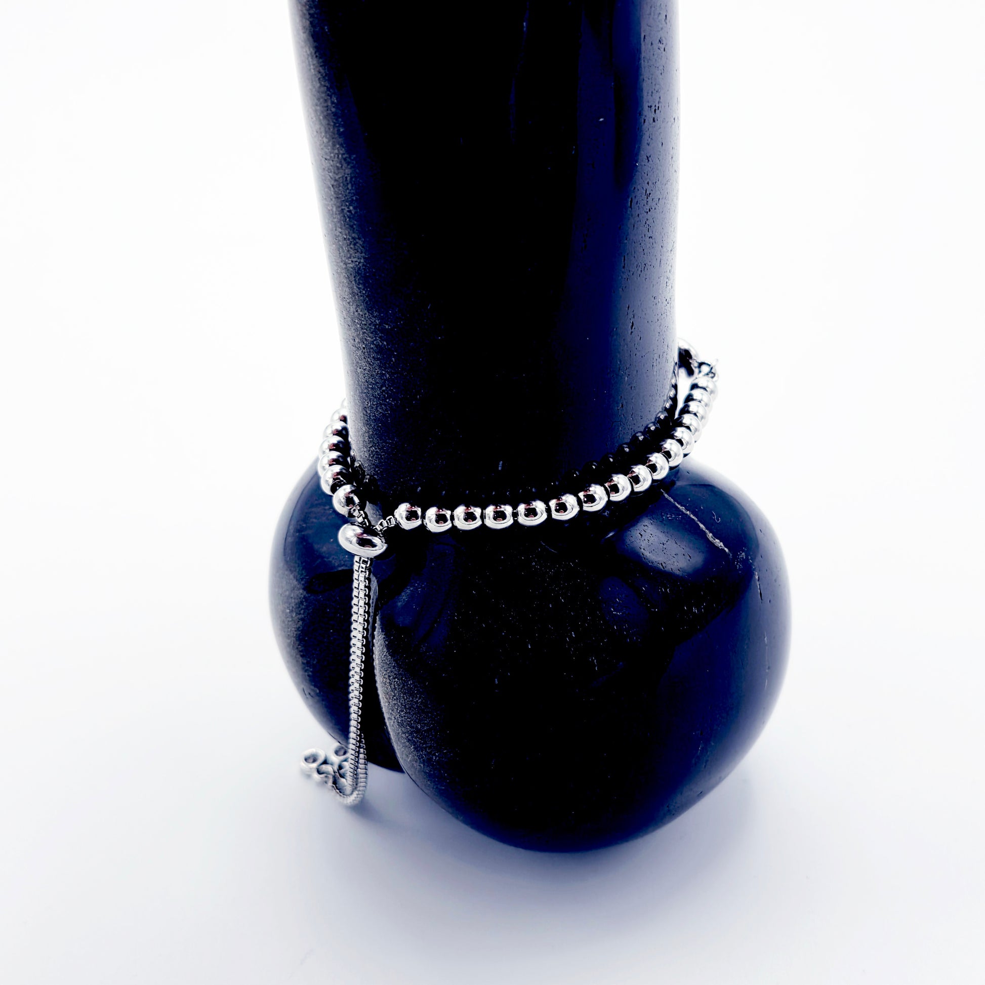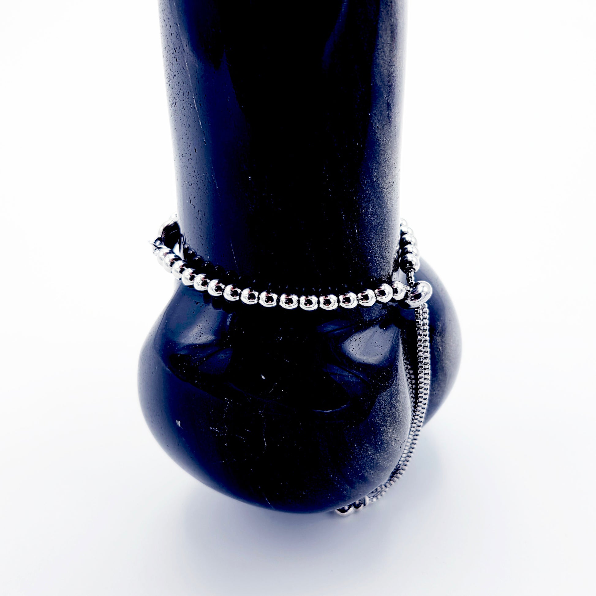 Platinum Penis Noose, Adjustable Cock Bracelet with Beads