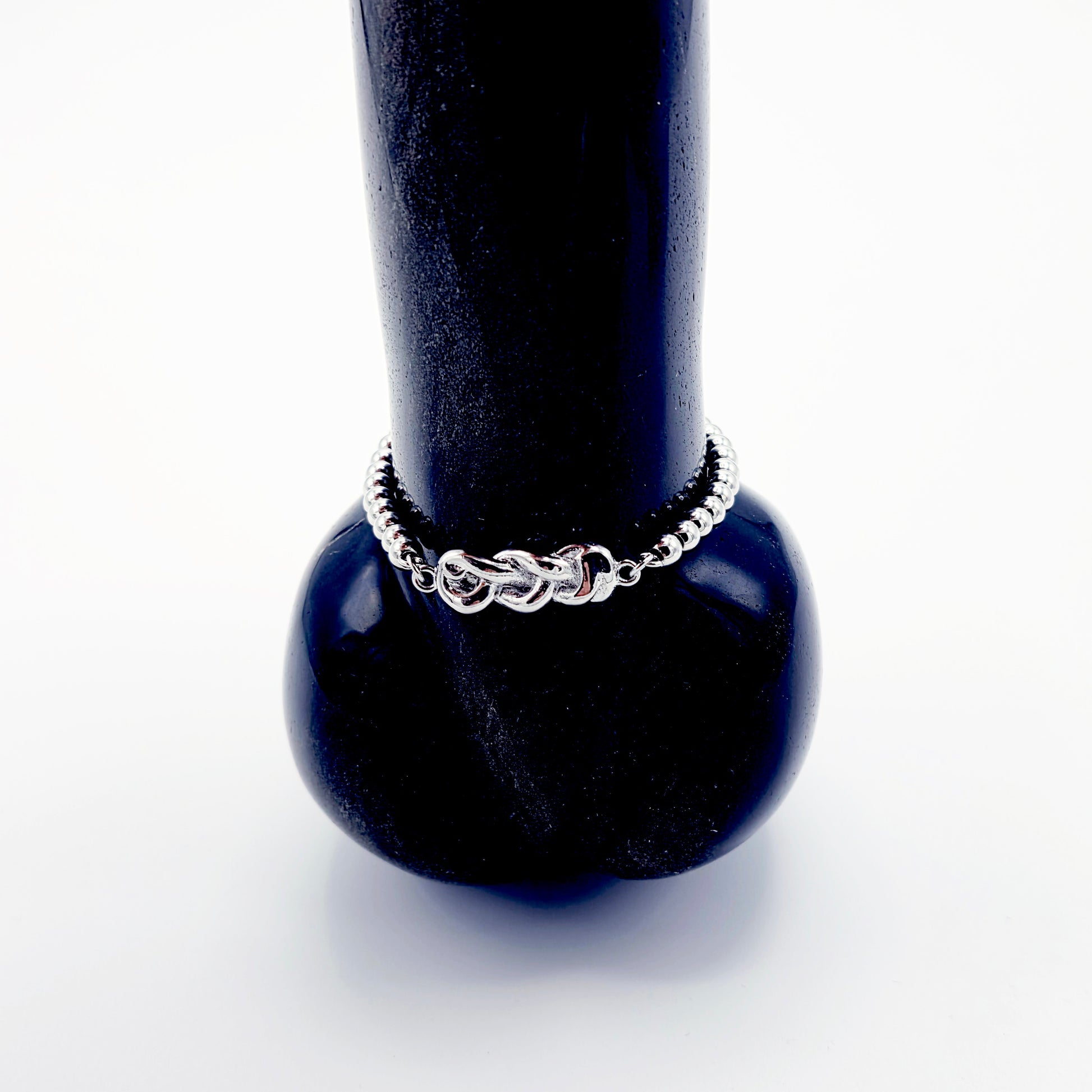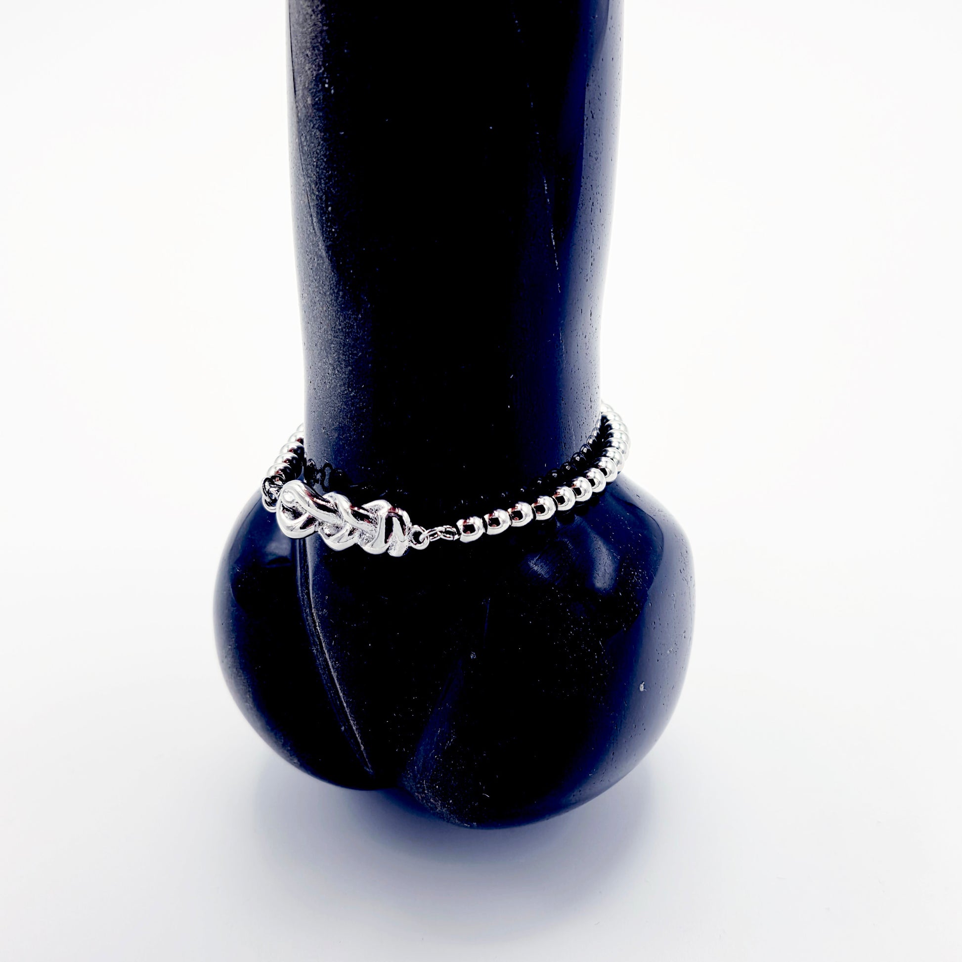 Peal Platinum Plated Beaded Penis Noose Cock Bracelet with Knotted Pendant. Non-Piercing Body Jewelry for Men.ย