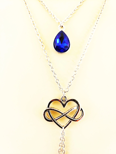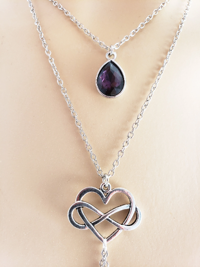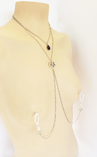 Poly Necklace with attached nipple nooses or feel the sting with nipple clamps. Poly amorous, Infinity Heart Multi Level Necklace