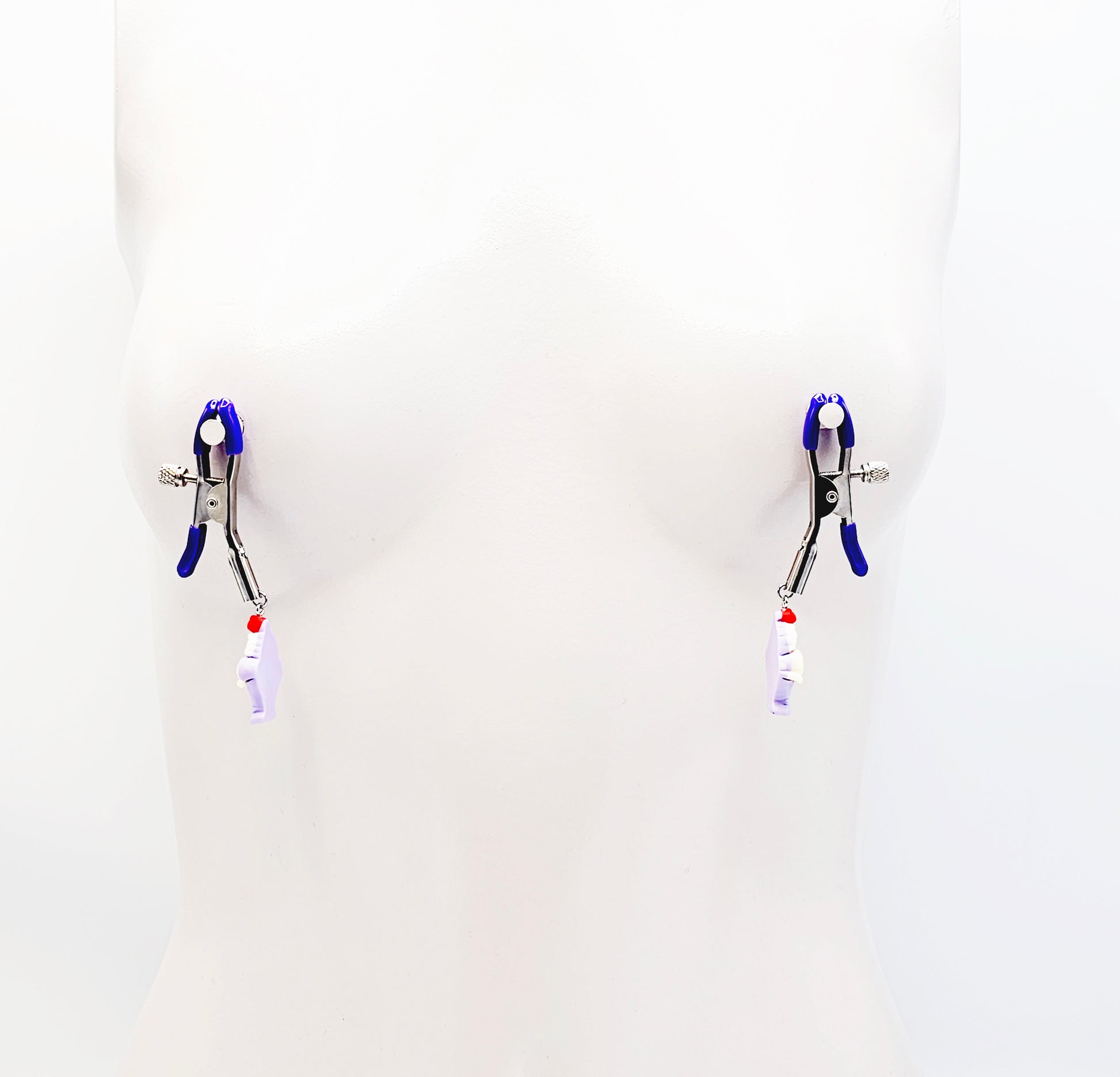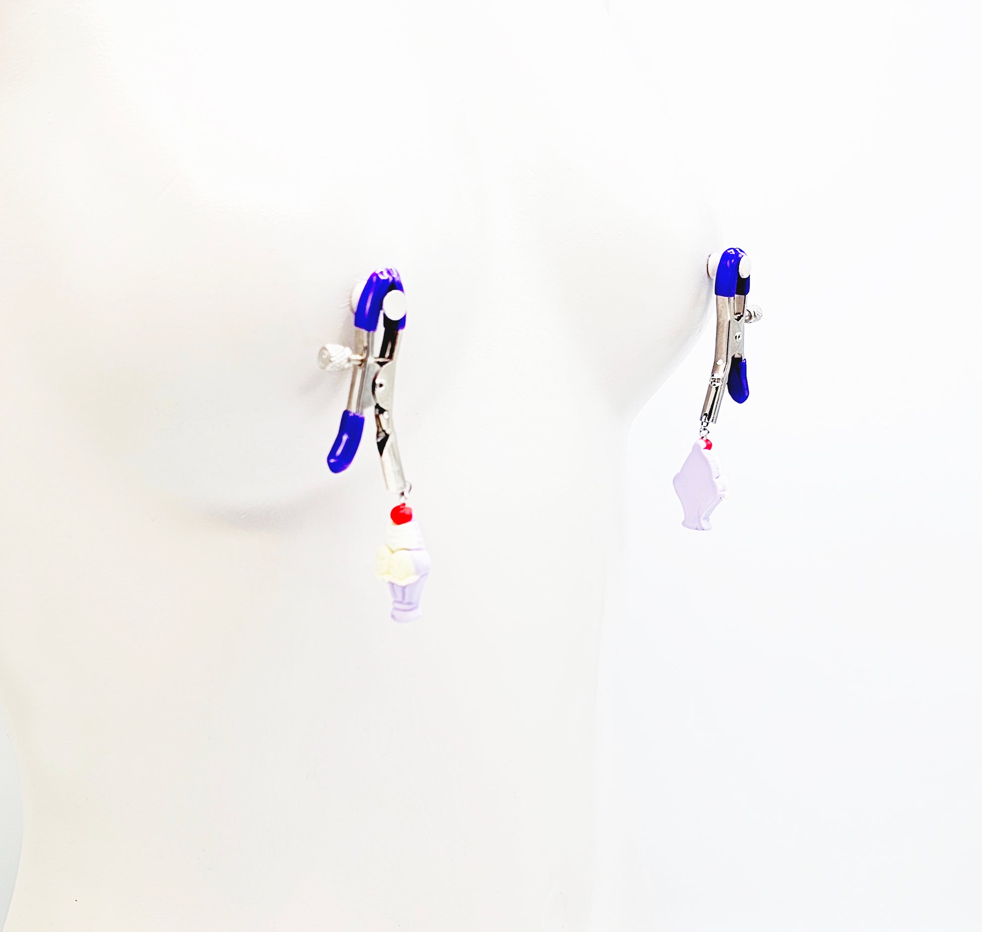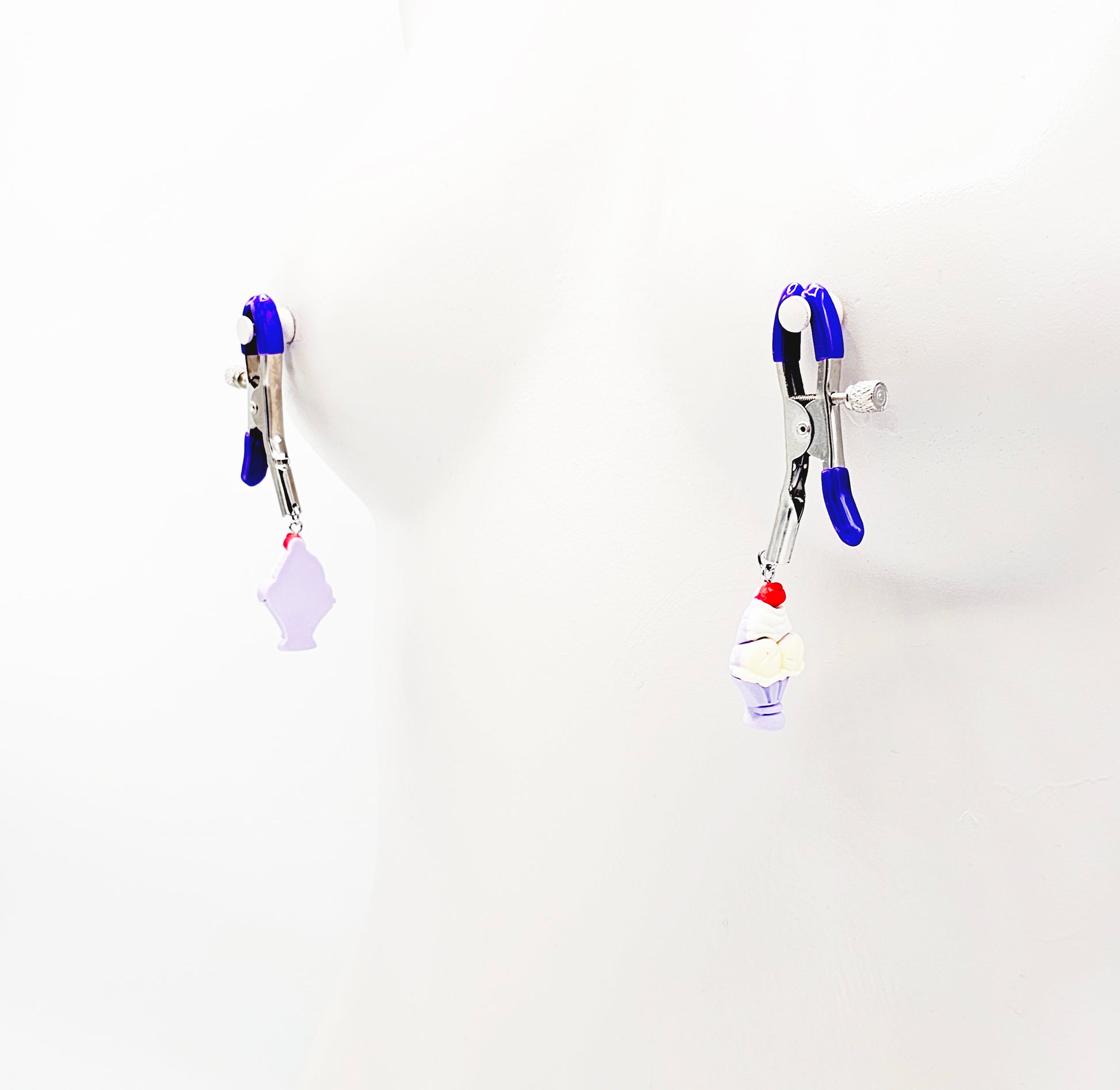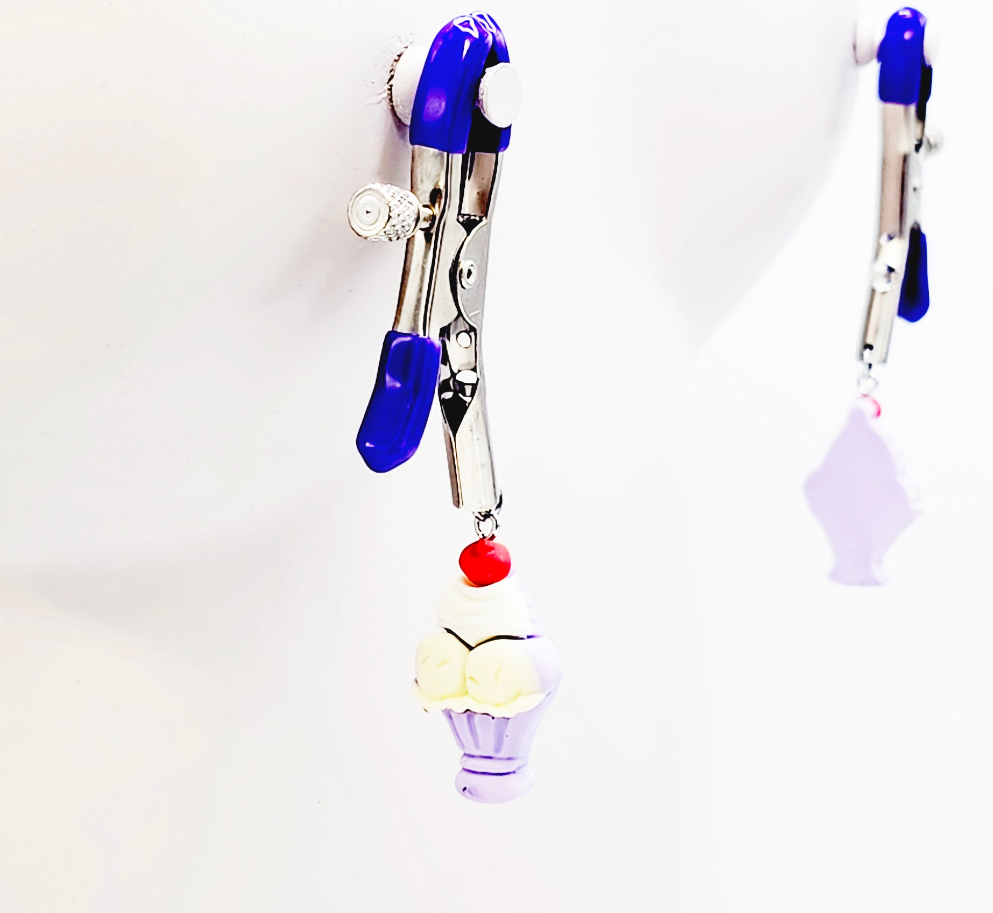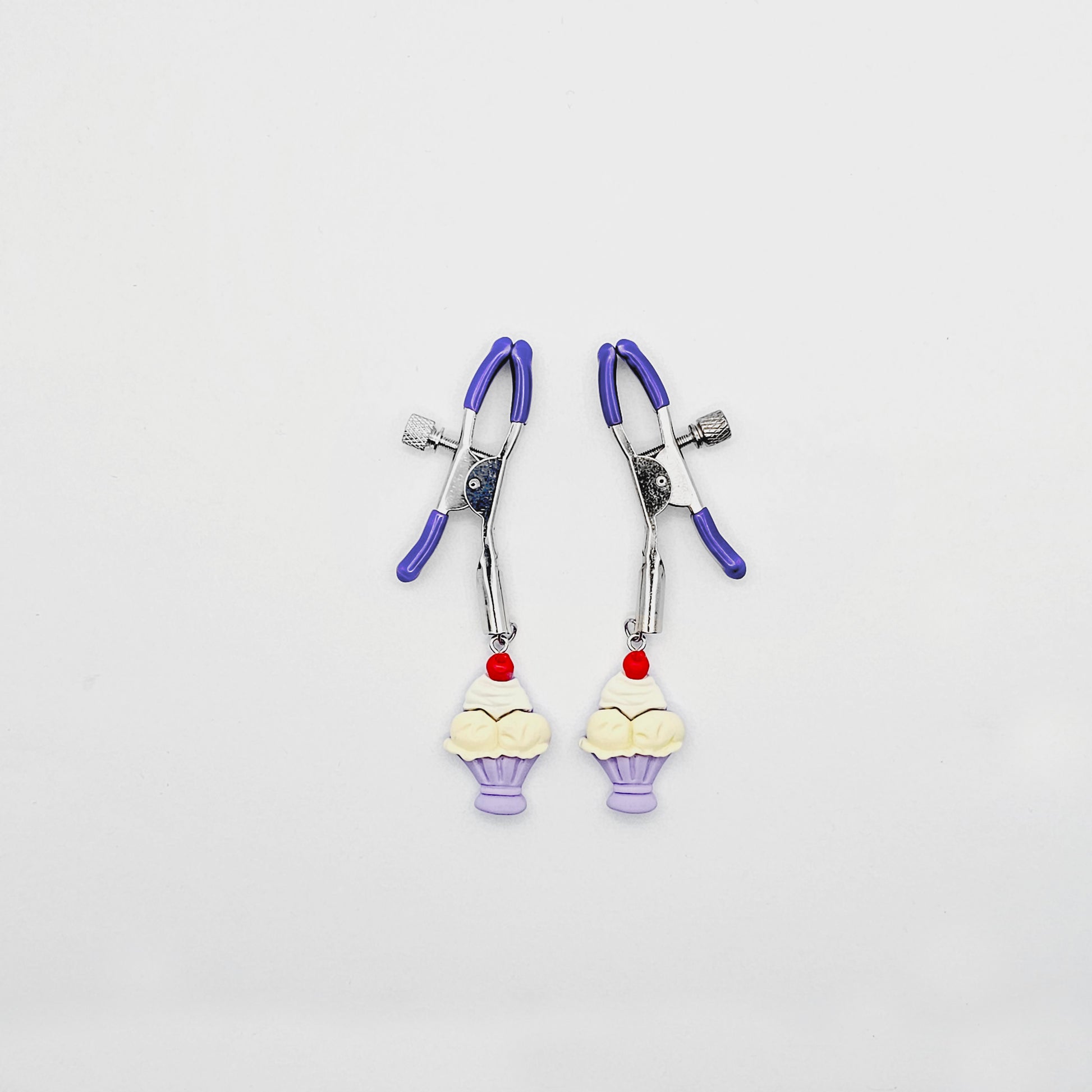 Purple Adjustable Nipple Clamps with Ice Cream Sundae for BDSM DDLG Summertime Fun!