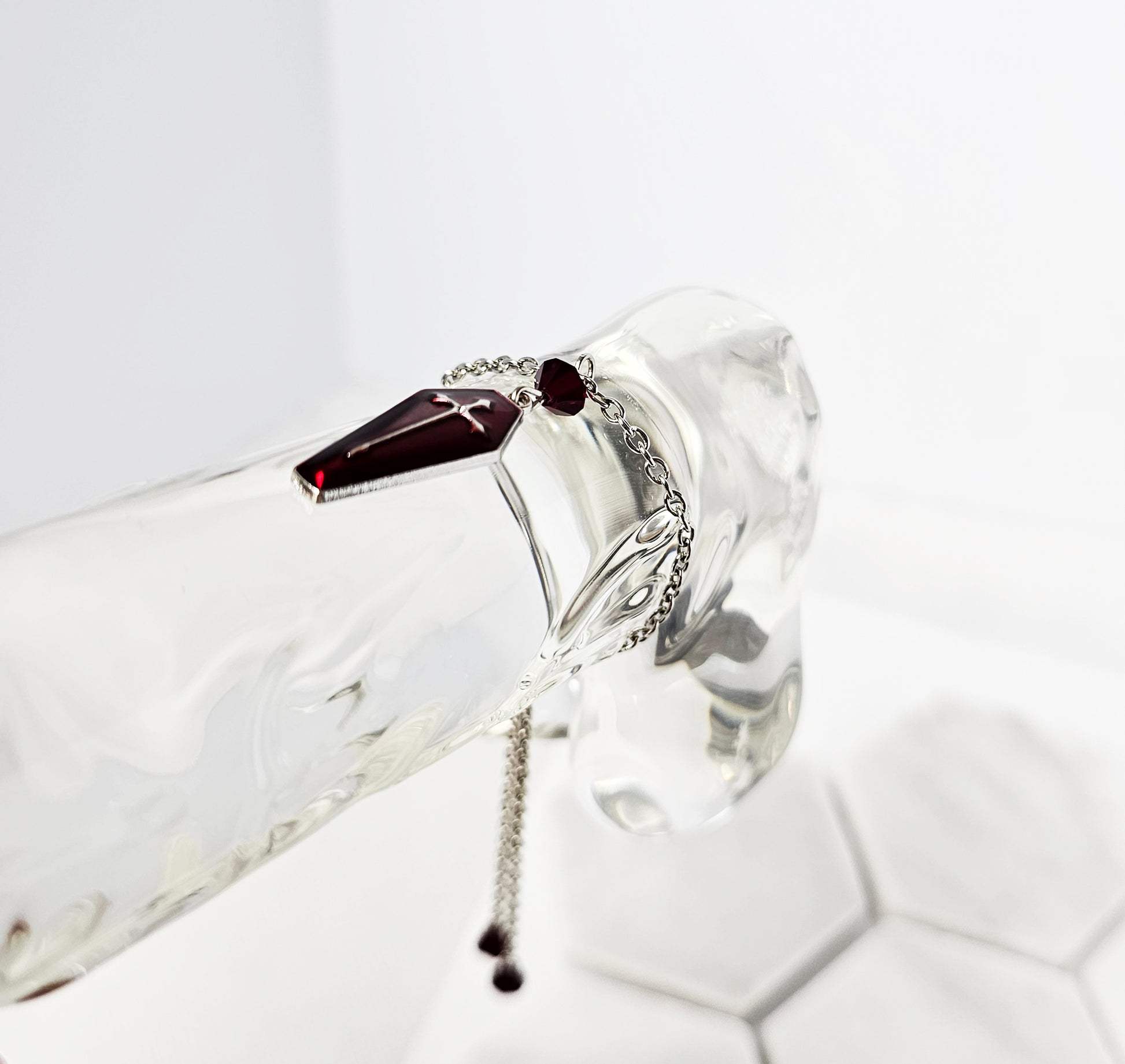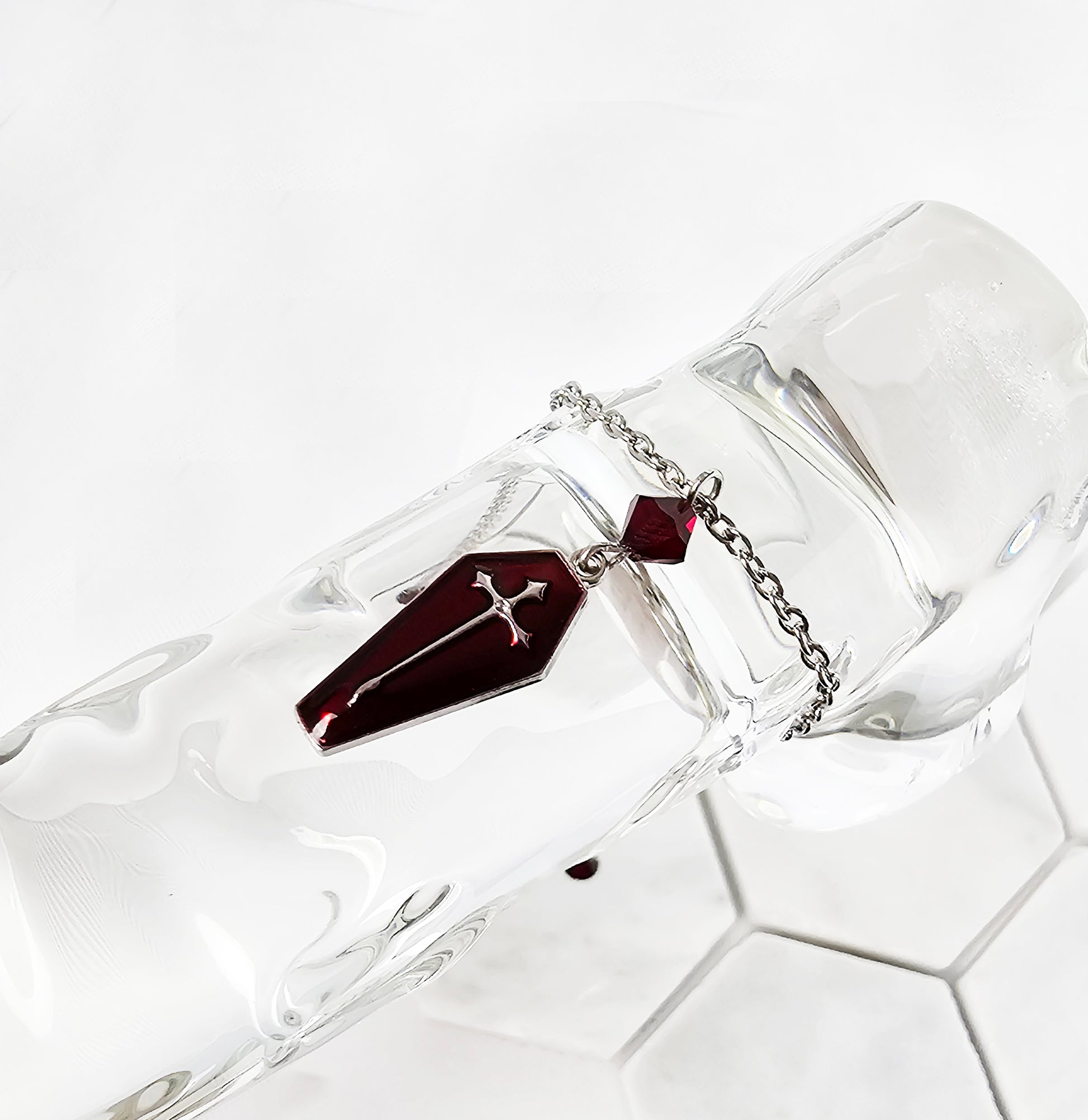 Penis Chain Noose for Halloween, Gothic. Red Crystal and Coffin Genital Bracelet. Non Piercing MATURE Body Jewelry For Men.