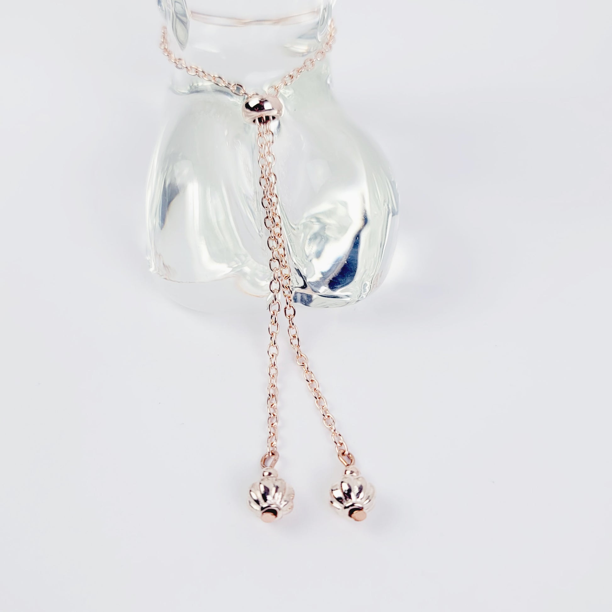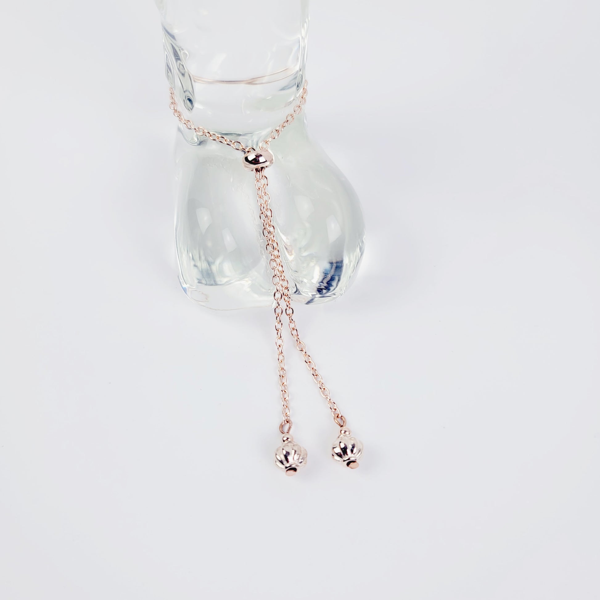 Rose Gold Iron Chain with Rose Gold Slider and Beads. Lead and Nickel Free.