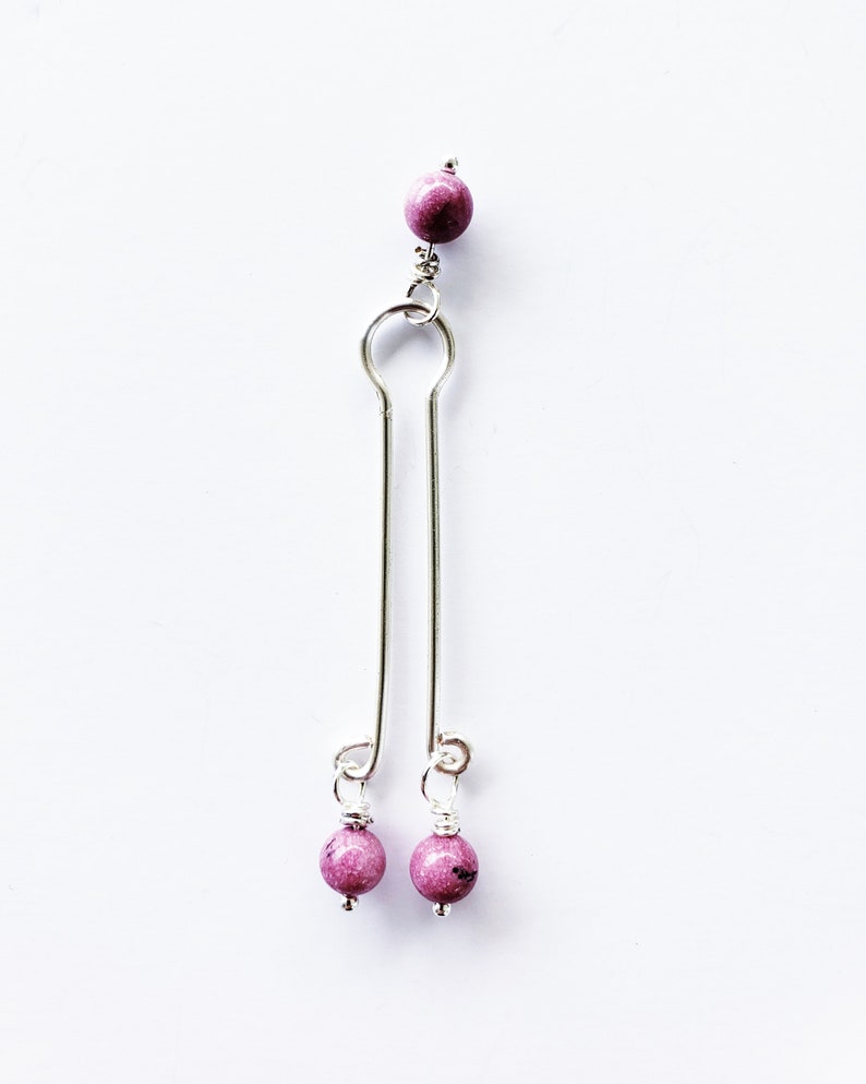 Silver Clitoral Clamp/Labia Clip with Pink Rhodonite Stone Beads.