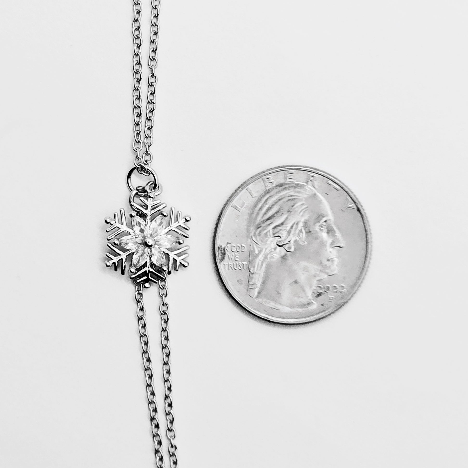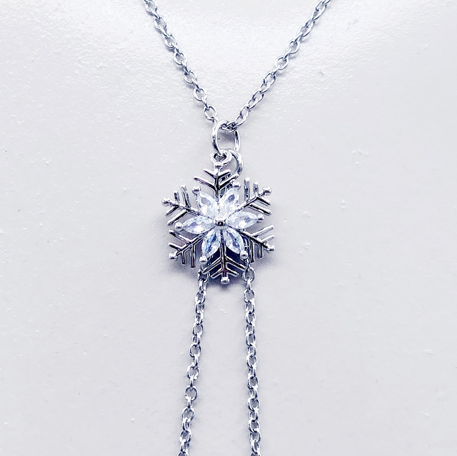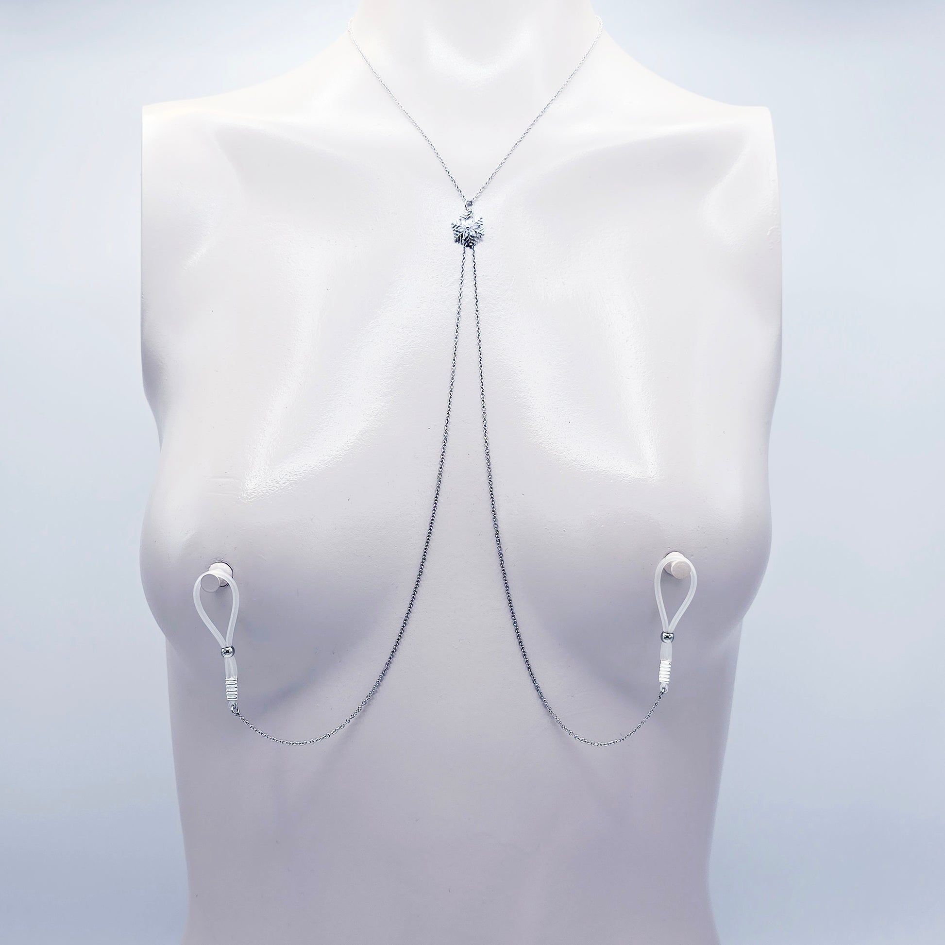 Snowflake Necklace to Nipple with Non-Piercing Nipple Nooses, Rings, or Clamps. Platinum, Stainless Steel, and CZ.