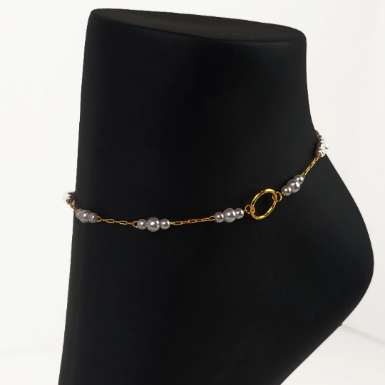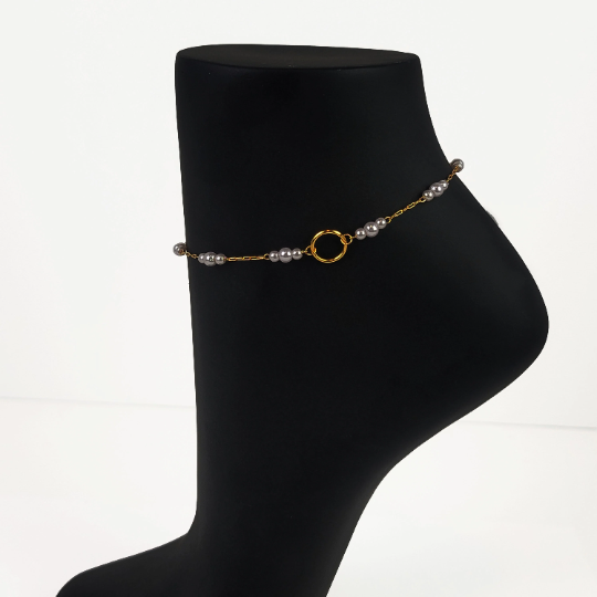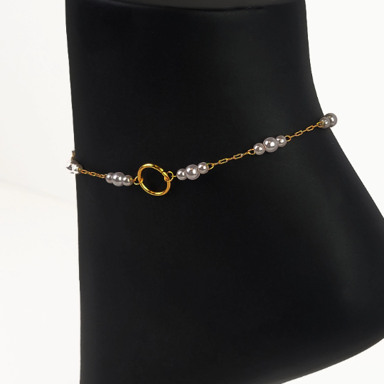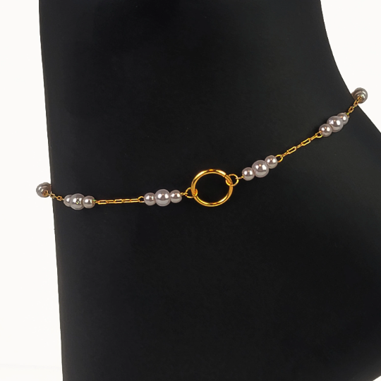 Subtle Day Collar for BDSM Submissive . O Ring Gold or Silver with Pearls Anklet.