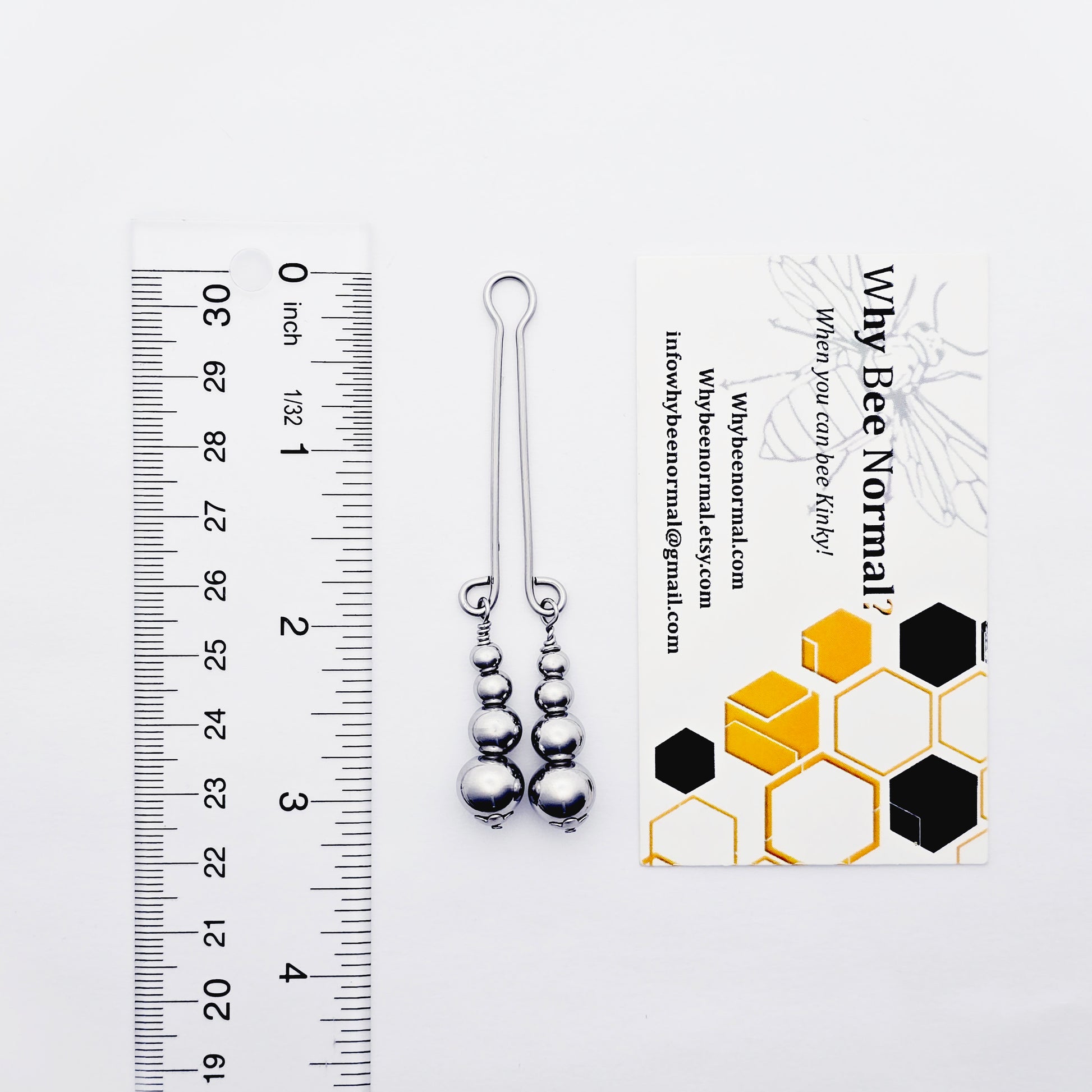 All clitoral/labia clips are handmade to aprox. 2.5 in. Please contact us with any questions about custom, sizing or adjustments, prior to placing your order. Keep in mind that all items are hand made.