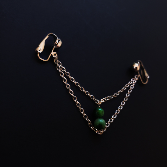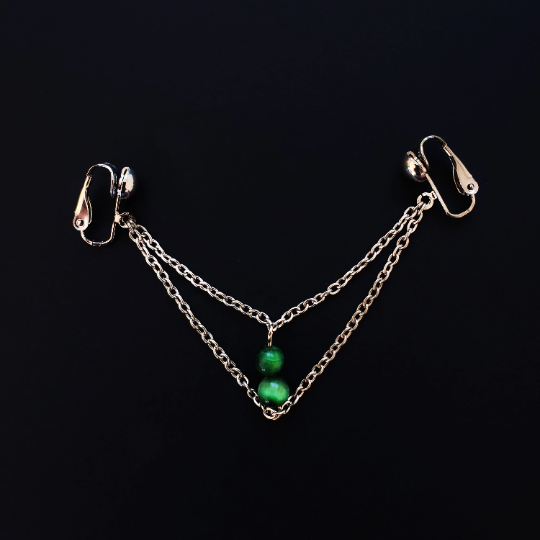 Vaginal Chain Dangle Non Piercing. Intimate Body Jewelry for Women. Labia Clips with Chain and Tigers Eye Stone.
