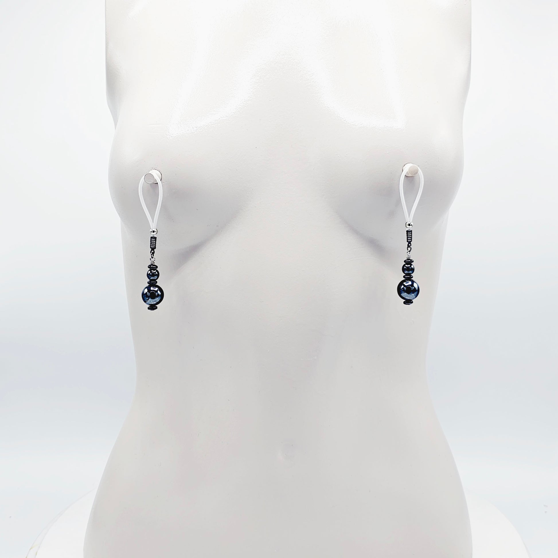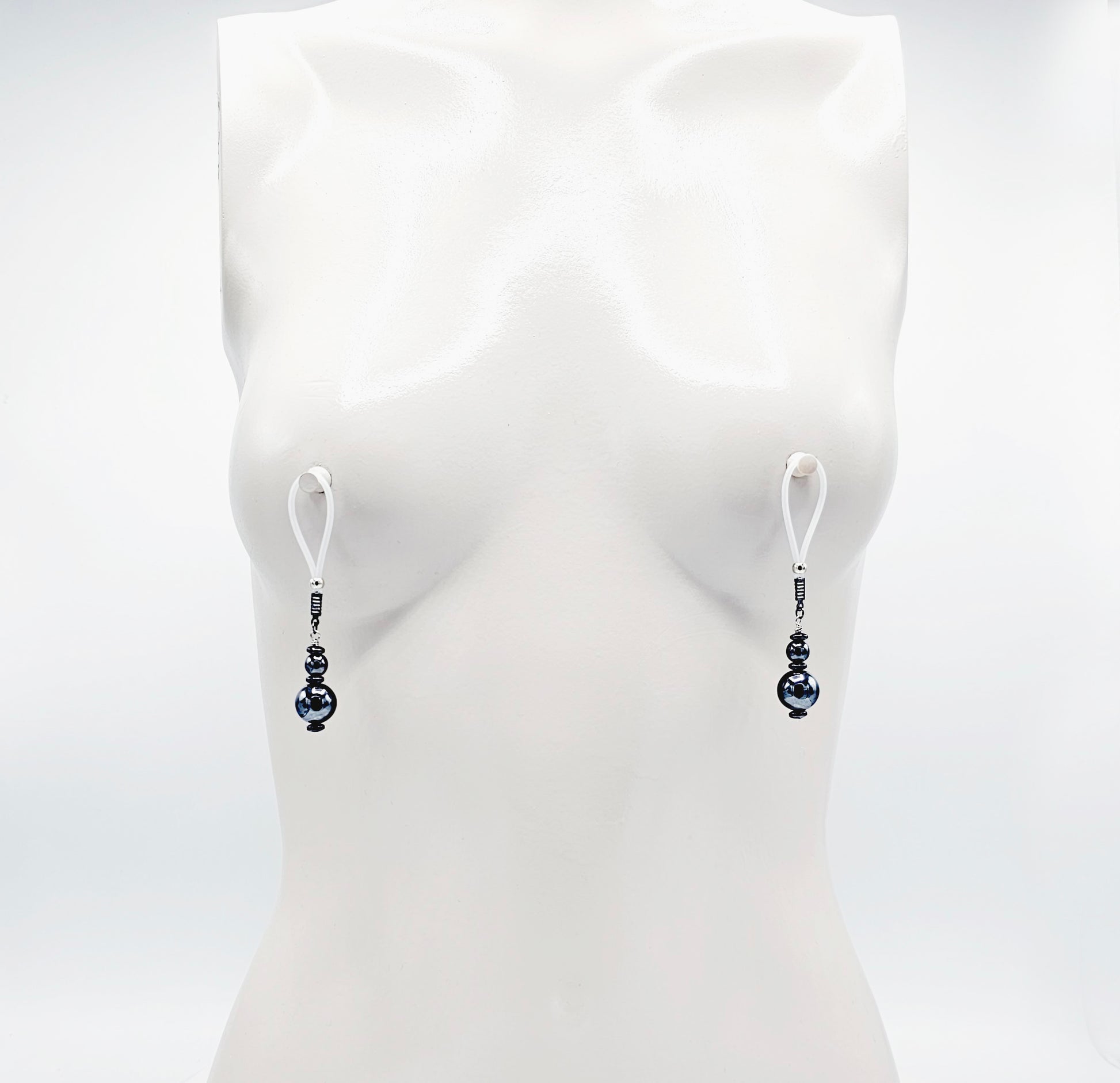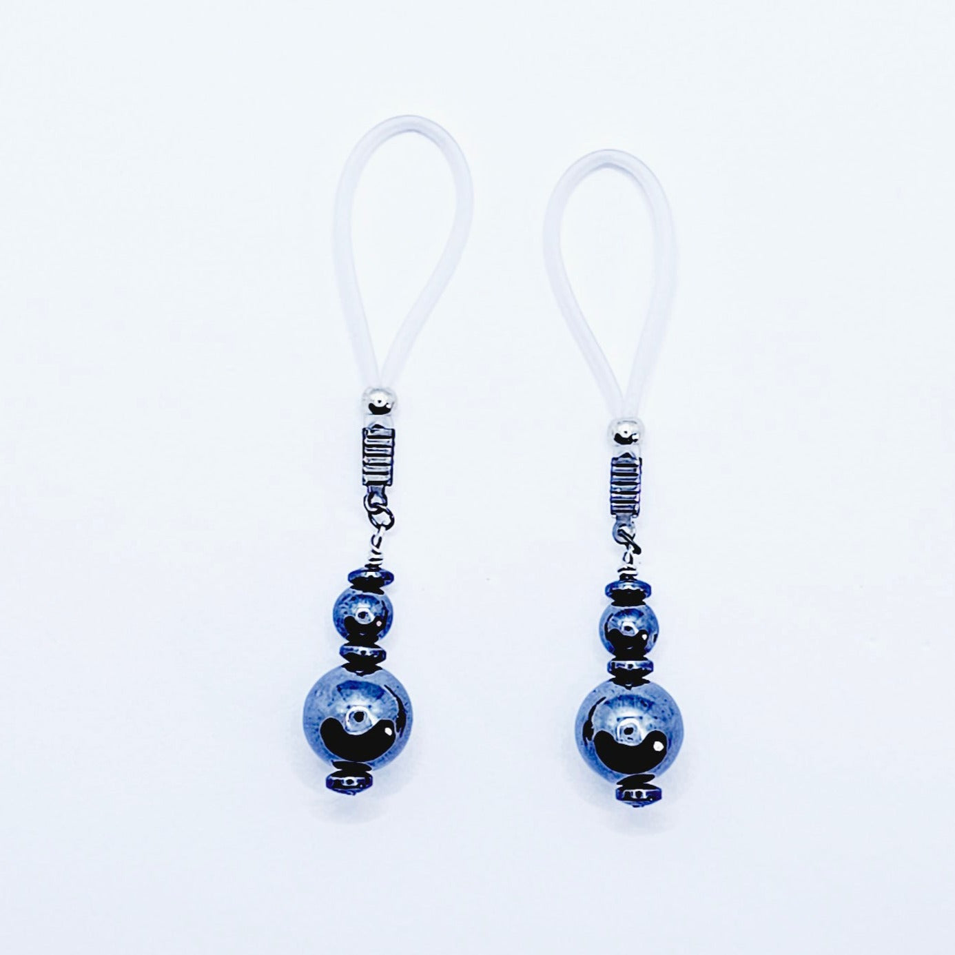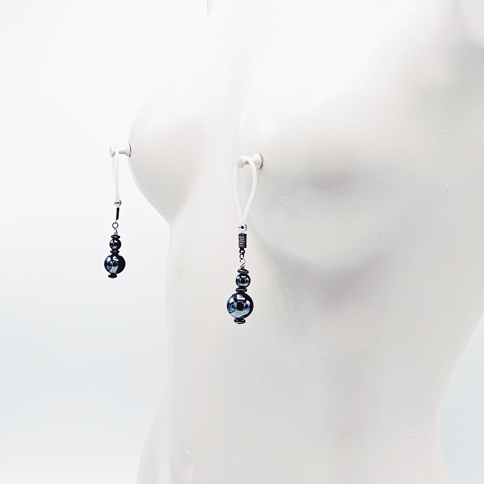 Weighted Nipple Noose Dangles with Hematite Beads, Non-Piercing. Or choose one of our five types of nipple clamps.