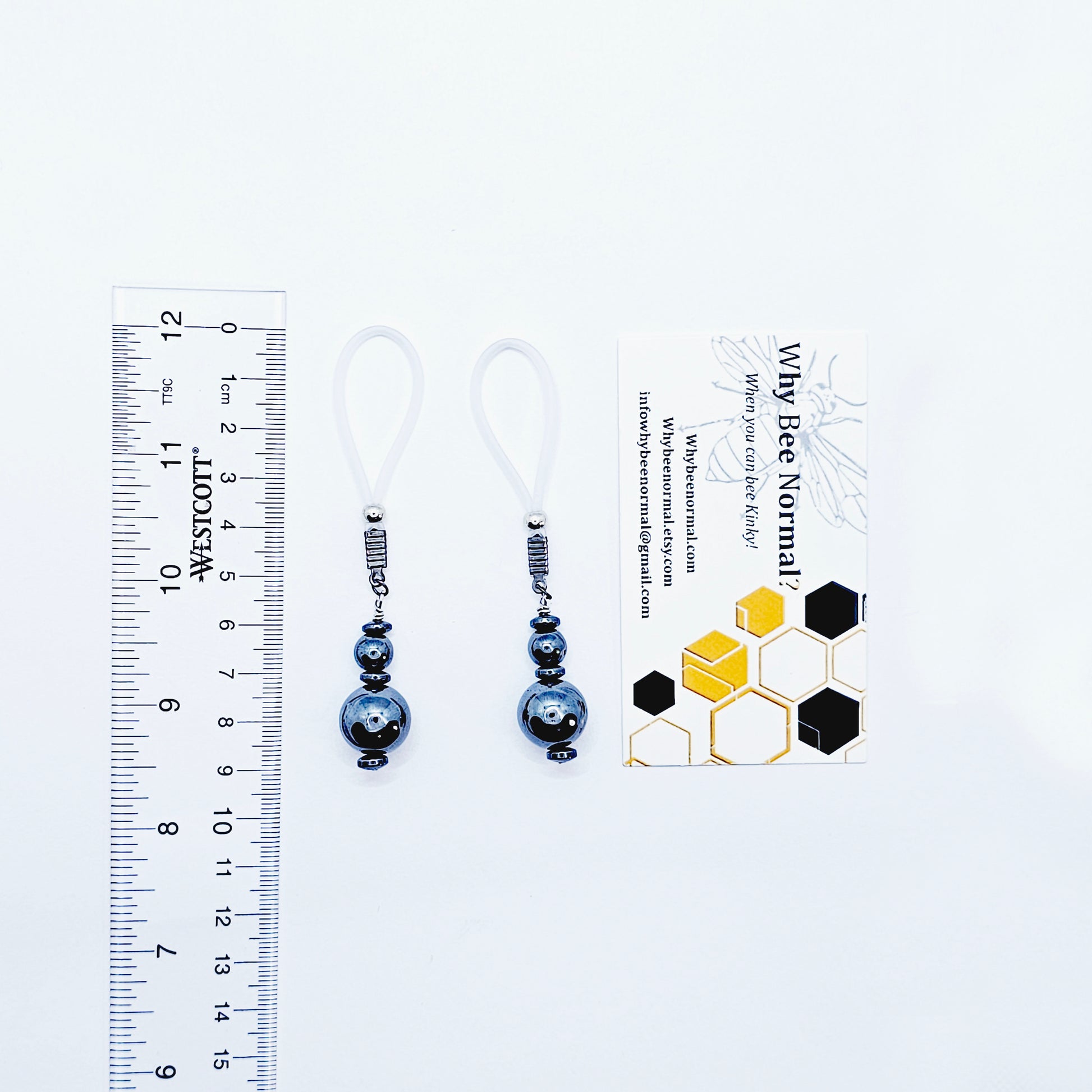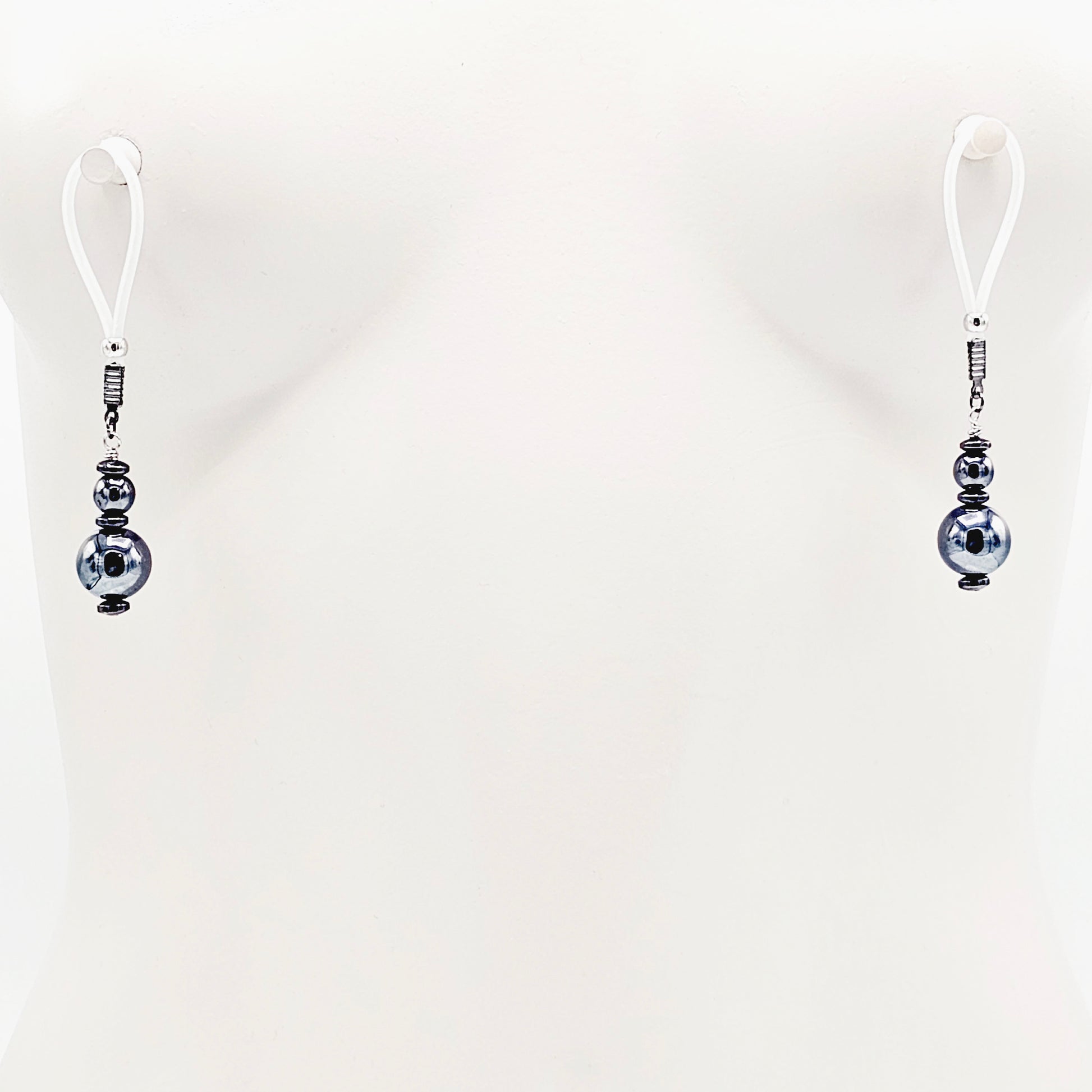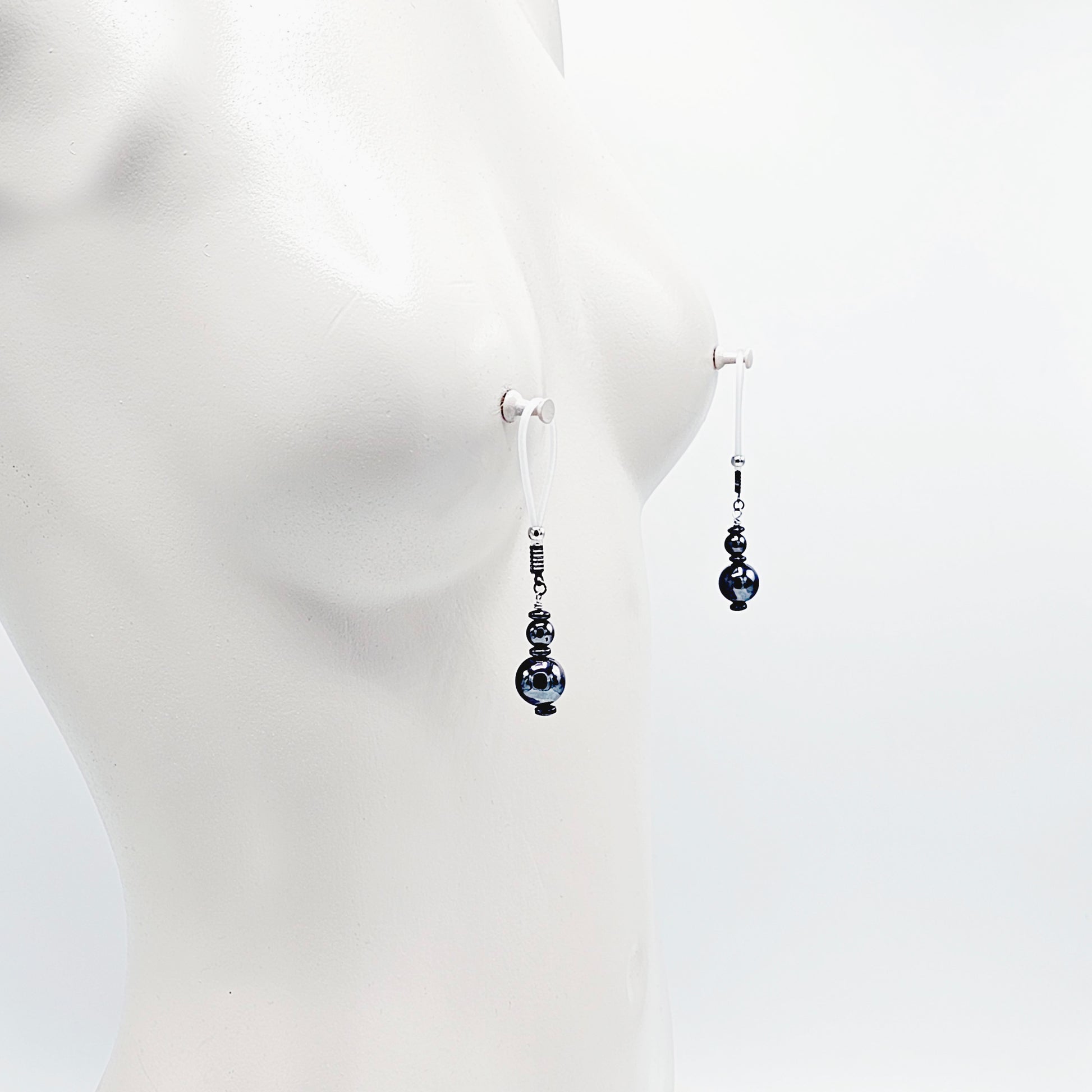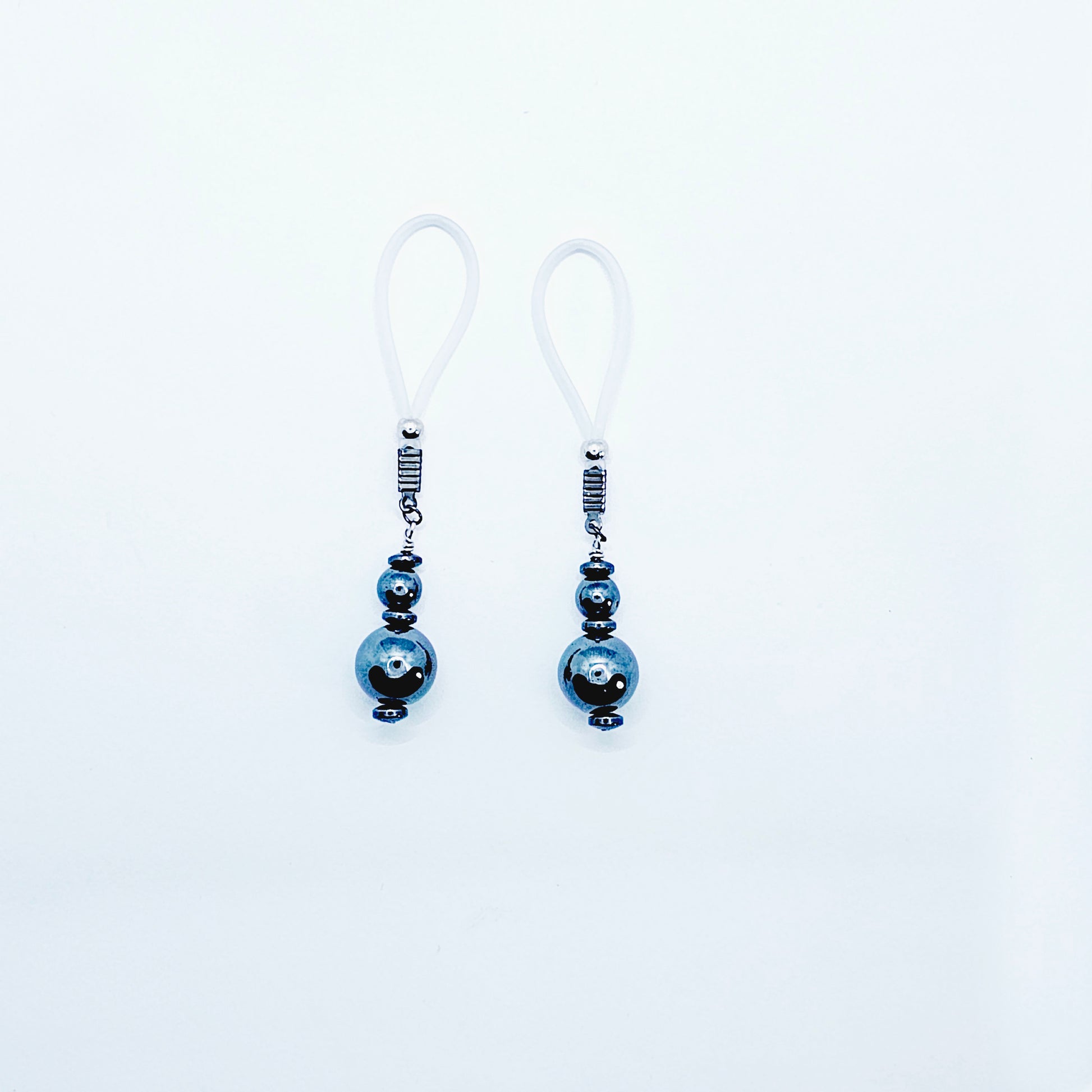 Weighted Nipple Noose Dangles with Hematite Beads, Non-Piercing. Or choose one of our five types of nipple clamps.