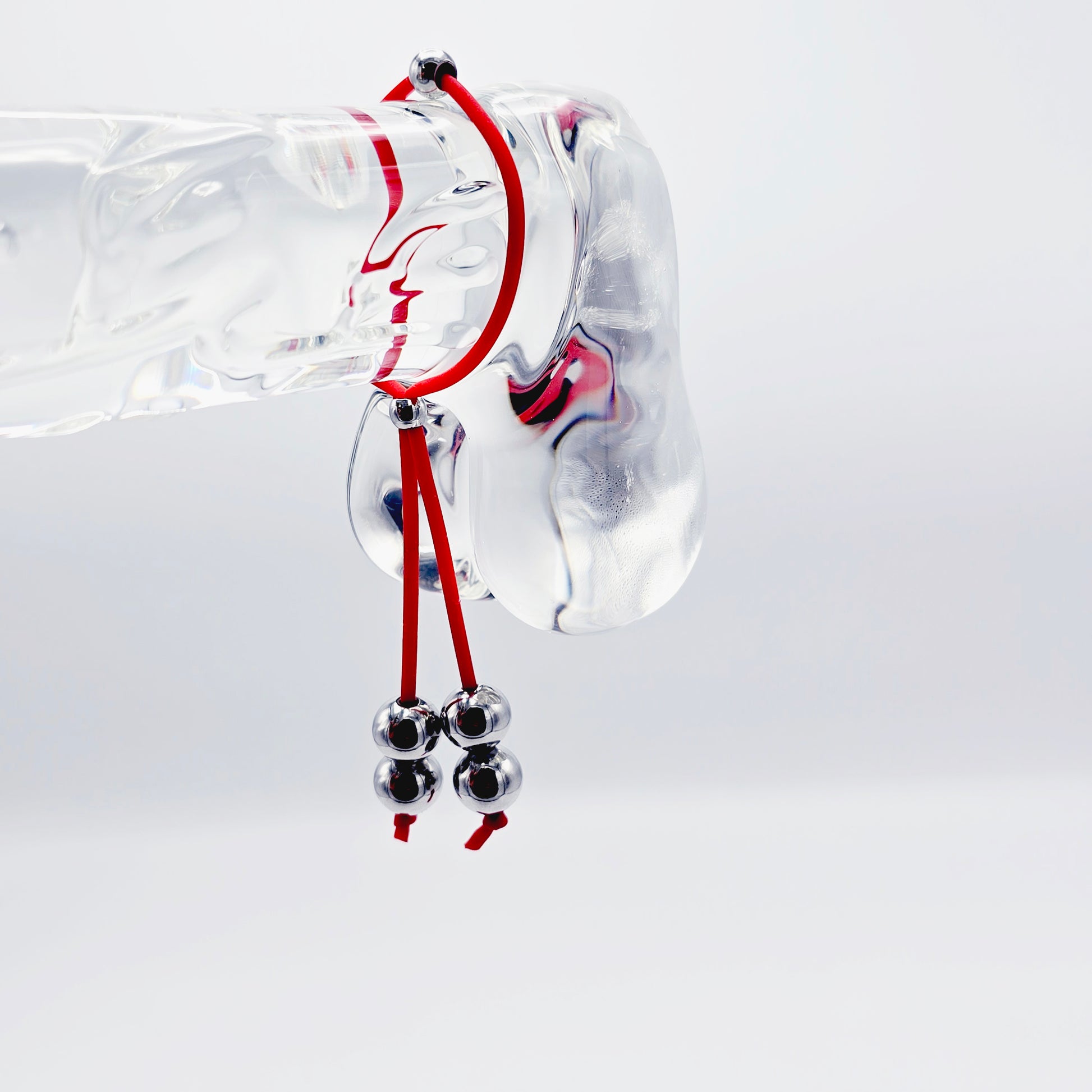 Weighted Penis Noose Jewelry in Red or Black Silicone, with Stainless Steel Bead Weights.